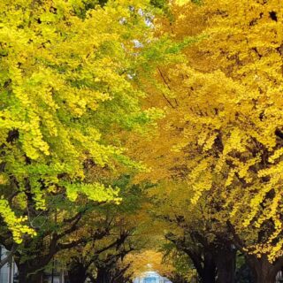 ぎっしりと葉をつけた大木が一斉に黄葉すると、まるで 光が降り注ぐトンネル のように広がり、訪れる人をやさしく包み込みます。