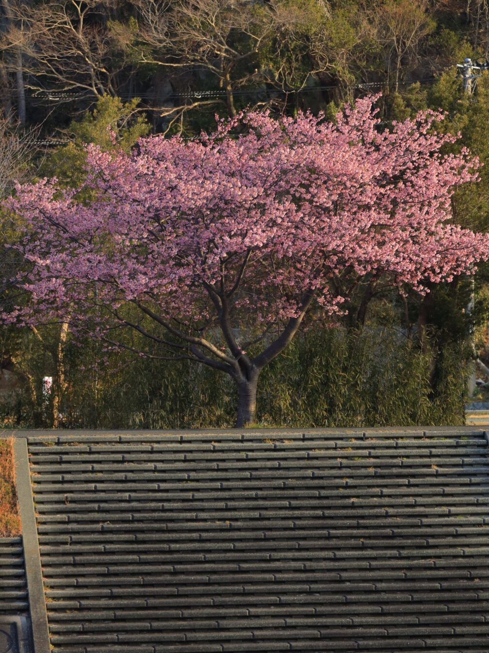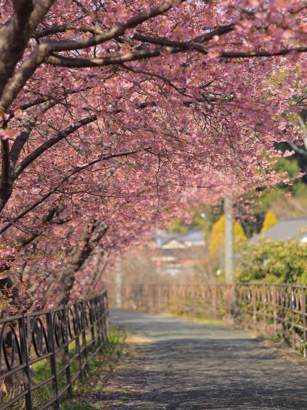 三浦海岸は思っていたより近い。事前に調べた最安コインパーキングに停め、歩いて会場へ。15分ほどで到着。そして――満開!ちゃんと満開!河津桜がもこもこと咲いています。リベンジ成功。