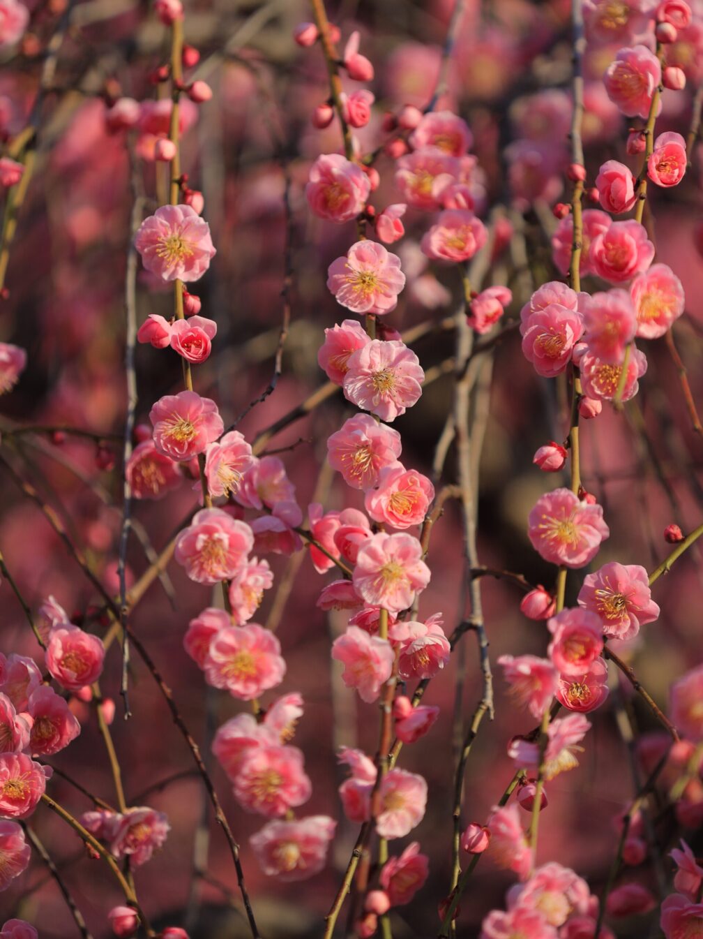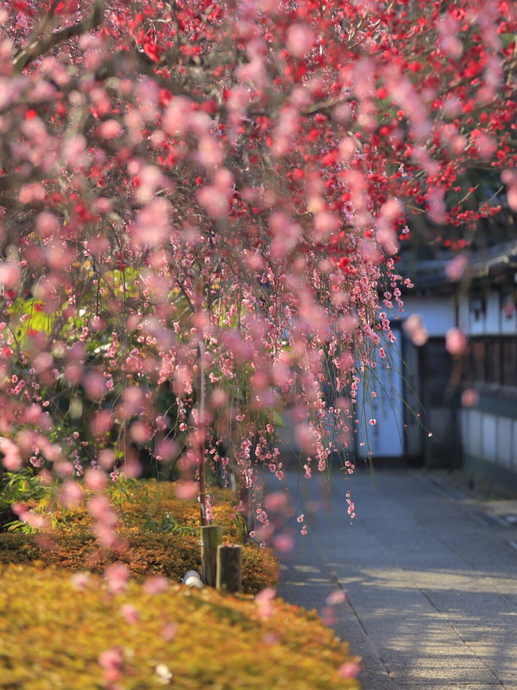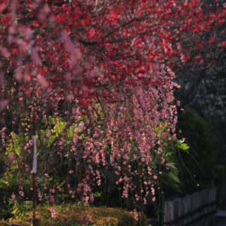 枝垂れ梅が見事。朝早い時間帯で人も少なく、撮影し放題。