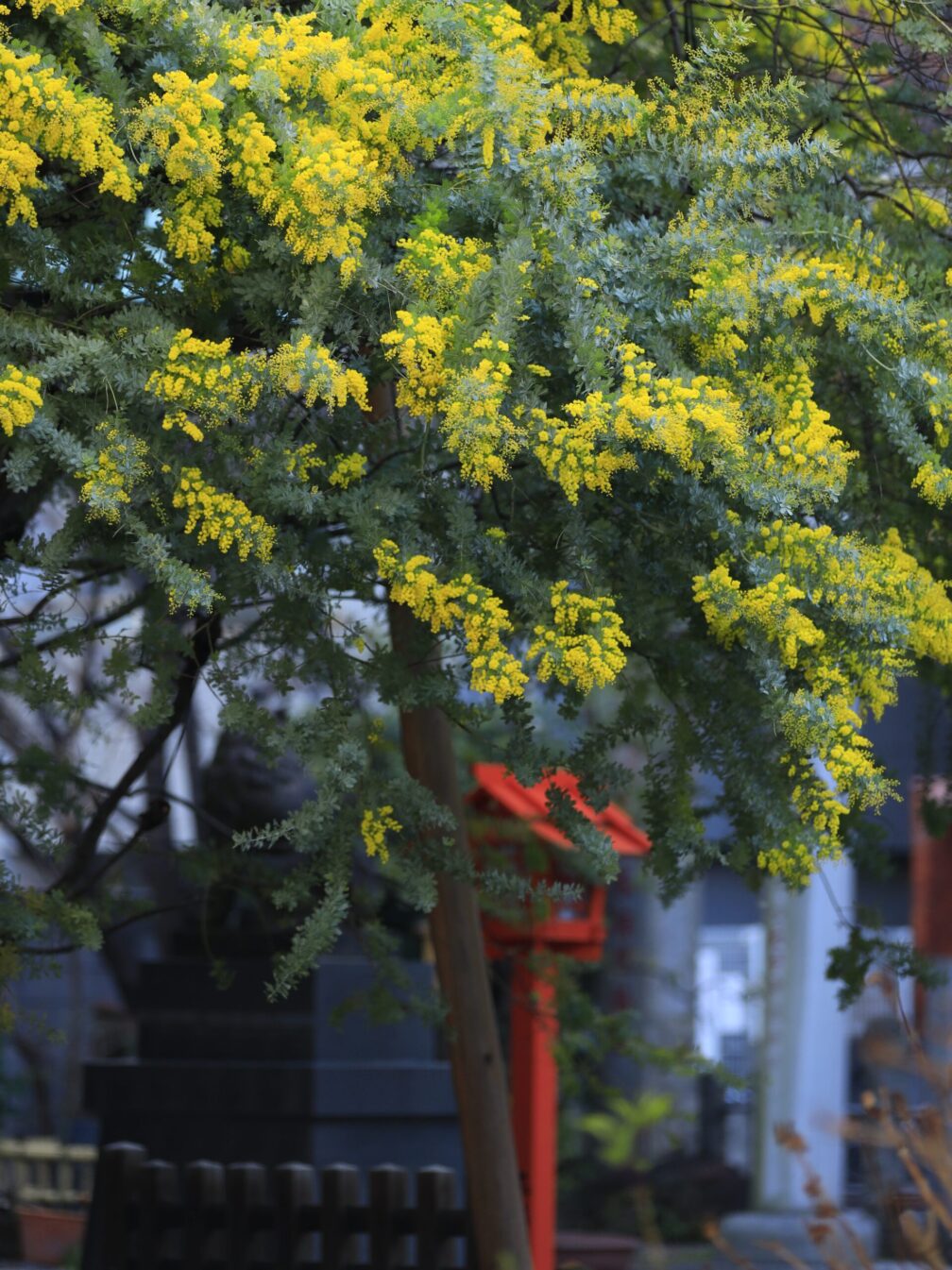・蔵前神社でミモザ