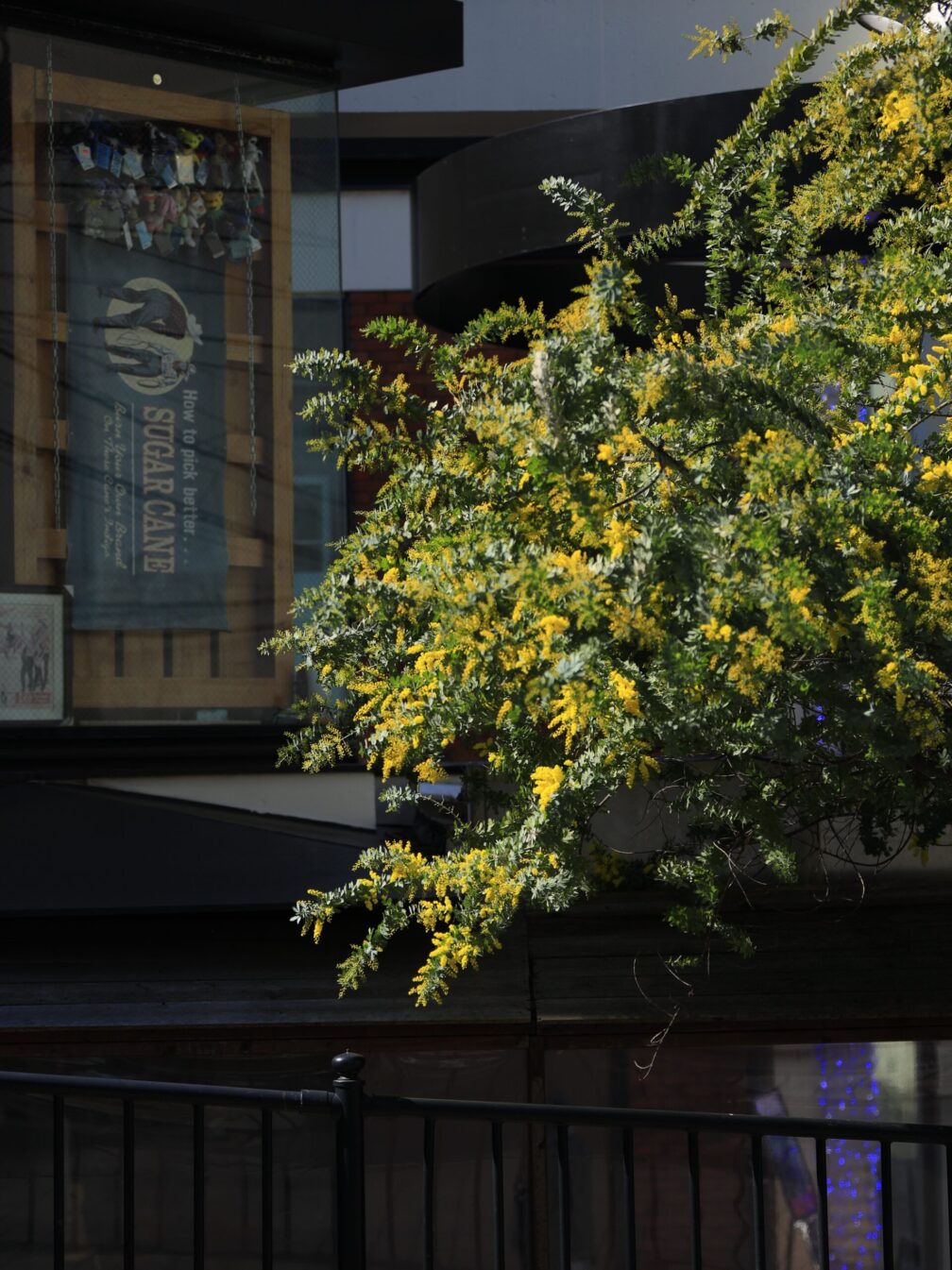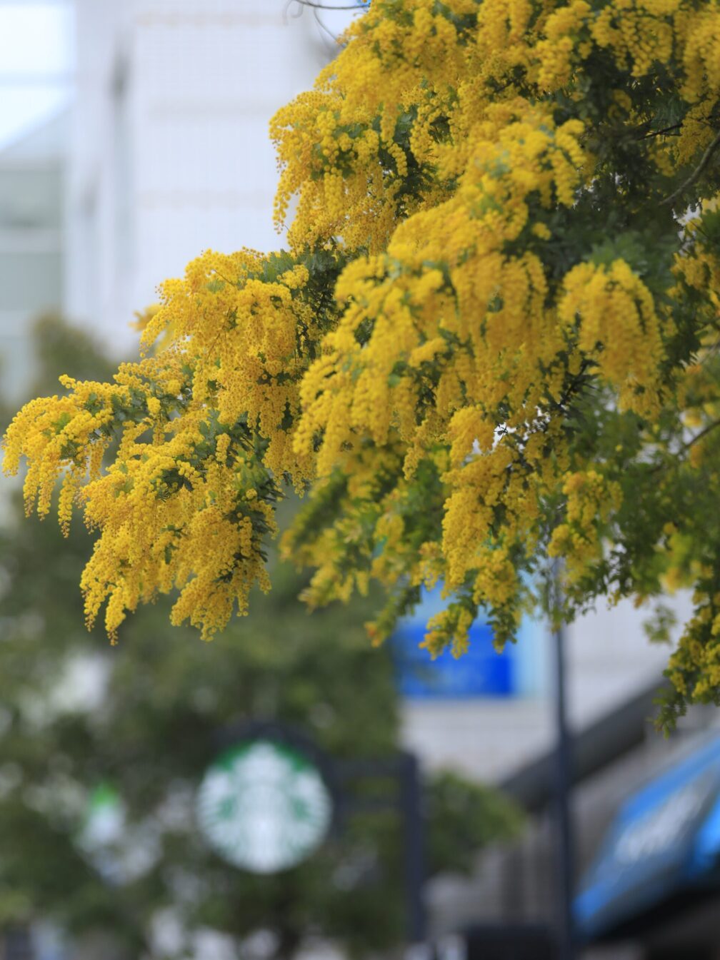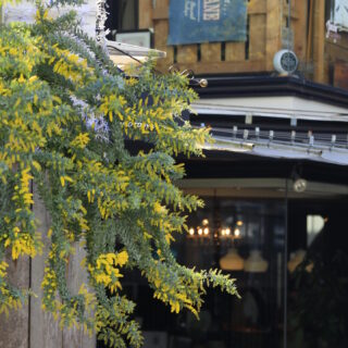 元町へ歩くと、カフェやパン屋の前にはすでに行列。おしゃれな空気の中、望遠レンズを肩に下げた私。完全に浮いていますが、もはや慣れました。カフェ横のミモザは建物の白壁と相性が良く、黄色がより鮮やかに映える。背景に街の雰囲気を入れながら構図を探る時間は、やはり楽しい。