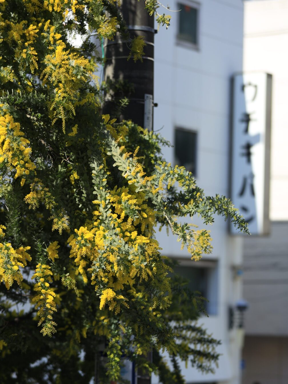 続いて横須賀中央駅前のミモザ。駅前で望遠レンズを構える男。周囲からの視線が少し刺さりますが、動じません。もう慣れました。車に戻ると息子が「何撮ってたの?」と一言。そりゃそうだ。駅前の黄色い木を必死に撮る父。説明はざっくりで済ませました。