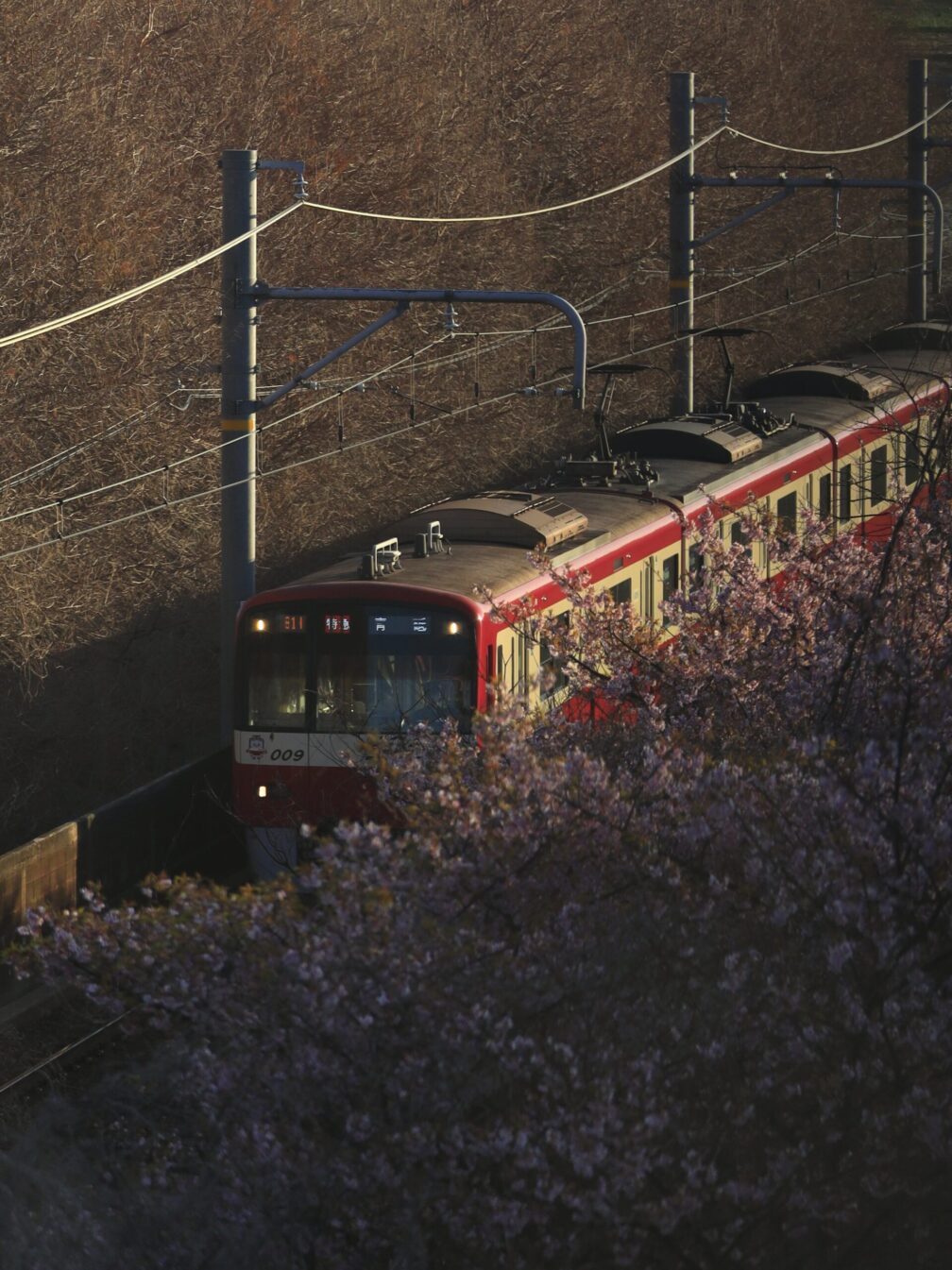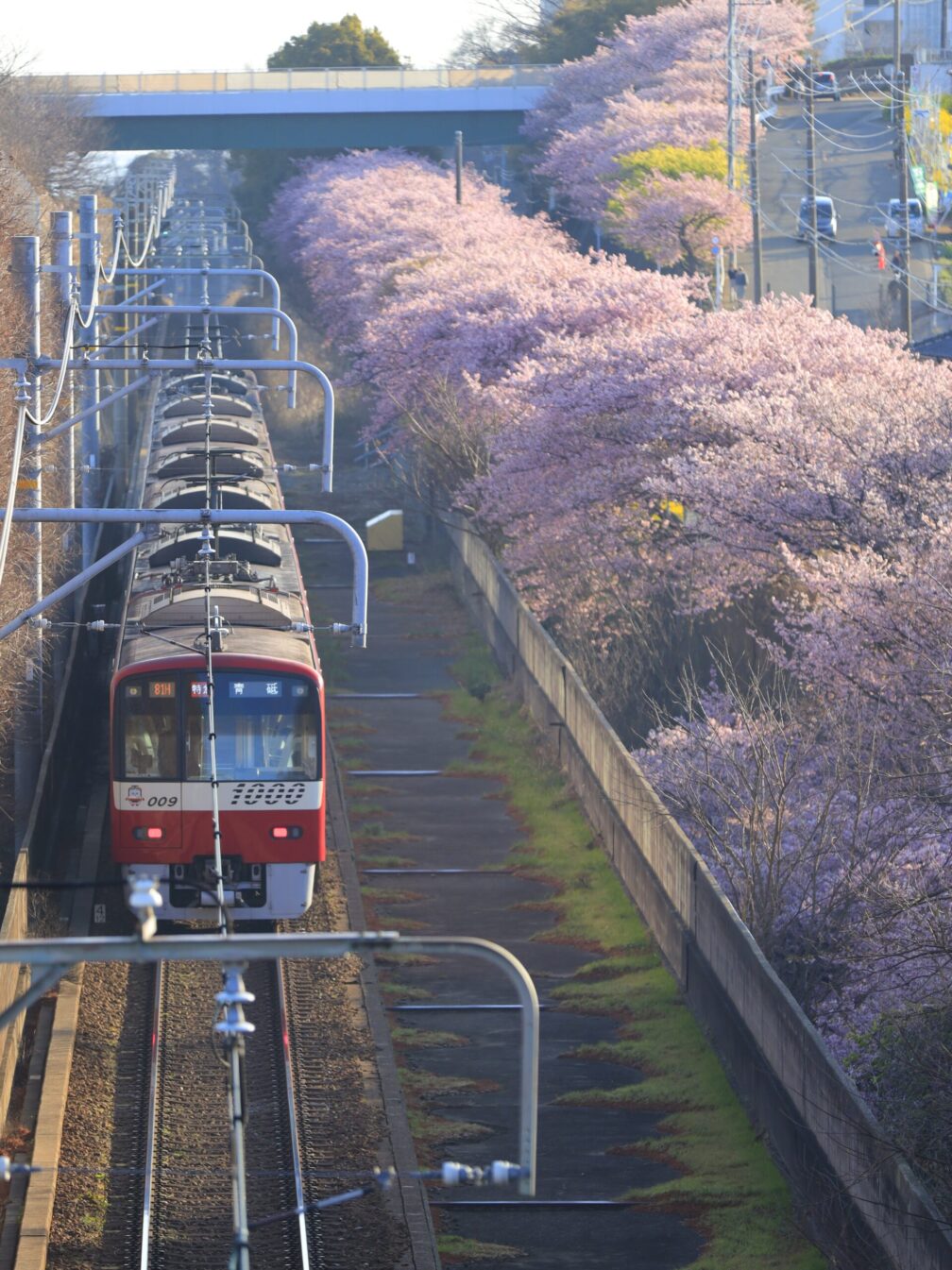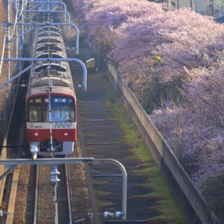 並木から池の方へ移動し、水面との絡みを狙う。その後、少し上に登って電車とのコラボも挑戦。しかし朝の空はやや白っぽい。うーん、次回は時間帯を変えるべきか。満開は当てたが、光は読み切れず。写真は奥が深いというより、底なし沼です。