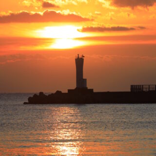 海、灯台、そして雪。なかなか見られない組み合わせに、テンションが一気に上がります。