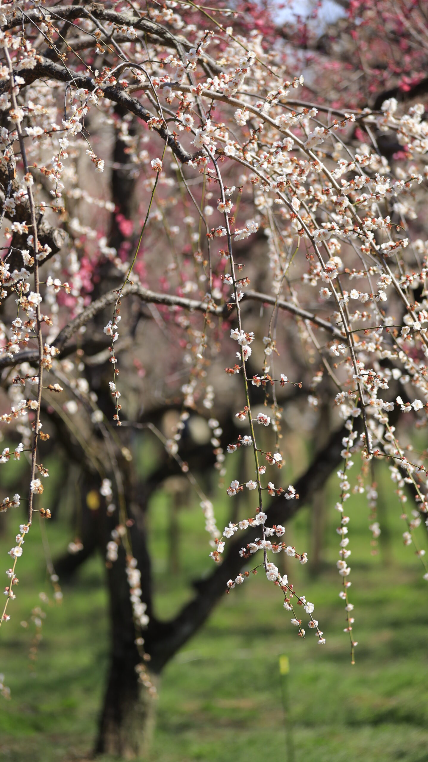 偕楽園|優雅に垂れる白い枝垂れ梅の美しい春の風景