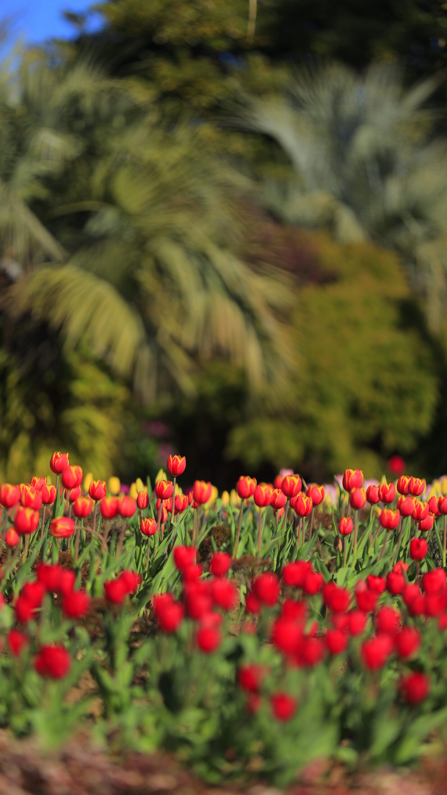 この写真は、ニューヨークランプミュージアム&フラワーガーデンで、赤色のアイスチューリップにピントをあわせて撮影したものです。