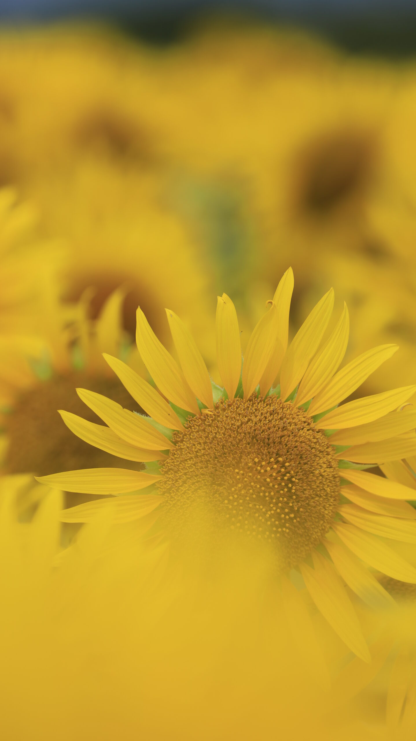 この写真は、座間ひまわり畑で、まるでヒマワリの海に包まれているかのような一輪をクローズアップで撮影したものです。真夏の午後、座間市の畑はまるで光の海だった。無数のひまわりがこちらを見つめ、陽を抱きしめるように咲き誇る。五十万という数の重みは、視界を越え、心を圧倒する。歩けば花びらの影が足元に揺れ、立ち止まれば、遠い昔の夏がふと胸によみがえる。
