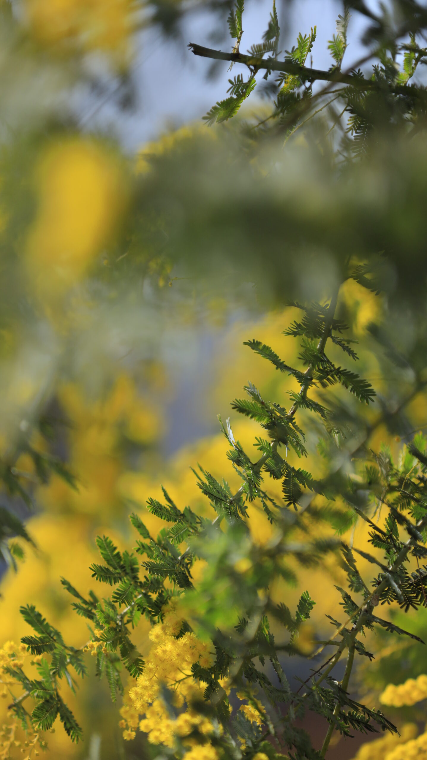 この写真は、茨城県内で、ミモザの葉の緑色に注目して撮影したものです。細かく広がる葉の形と鮮やかな緑が印象的で、花とはまた違ったミモザの魅力を表現しています。