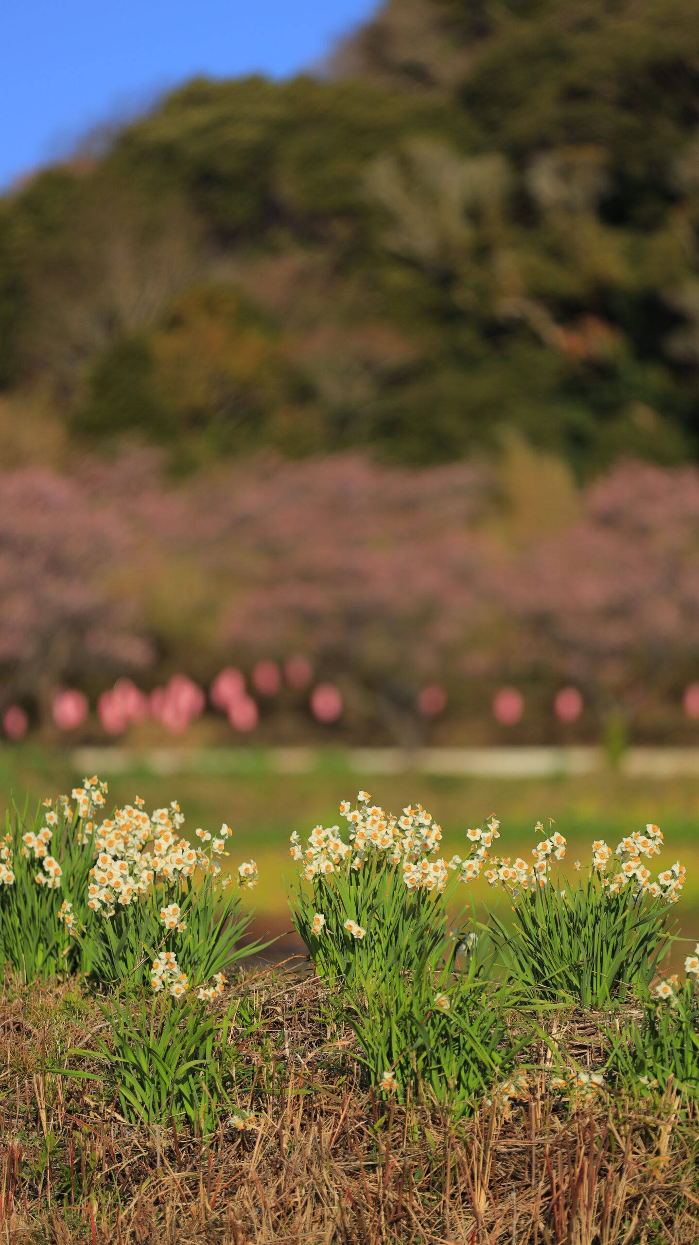 この写真は、抱湖園(南房総)で、少し離れた場所に咲く水仙の様子を撮影したものです。