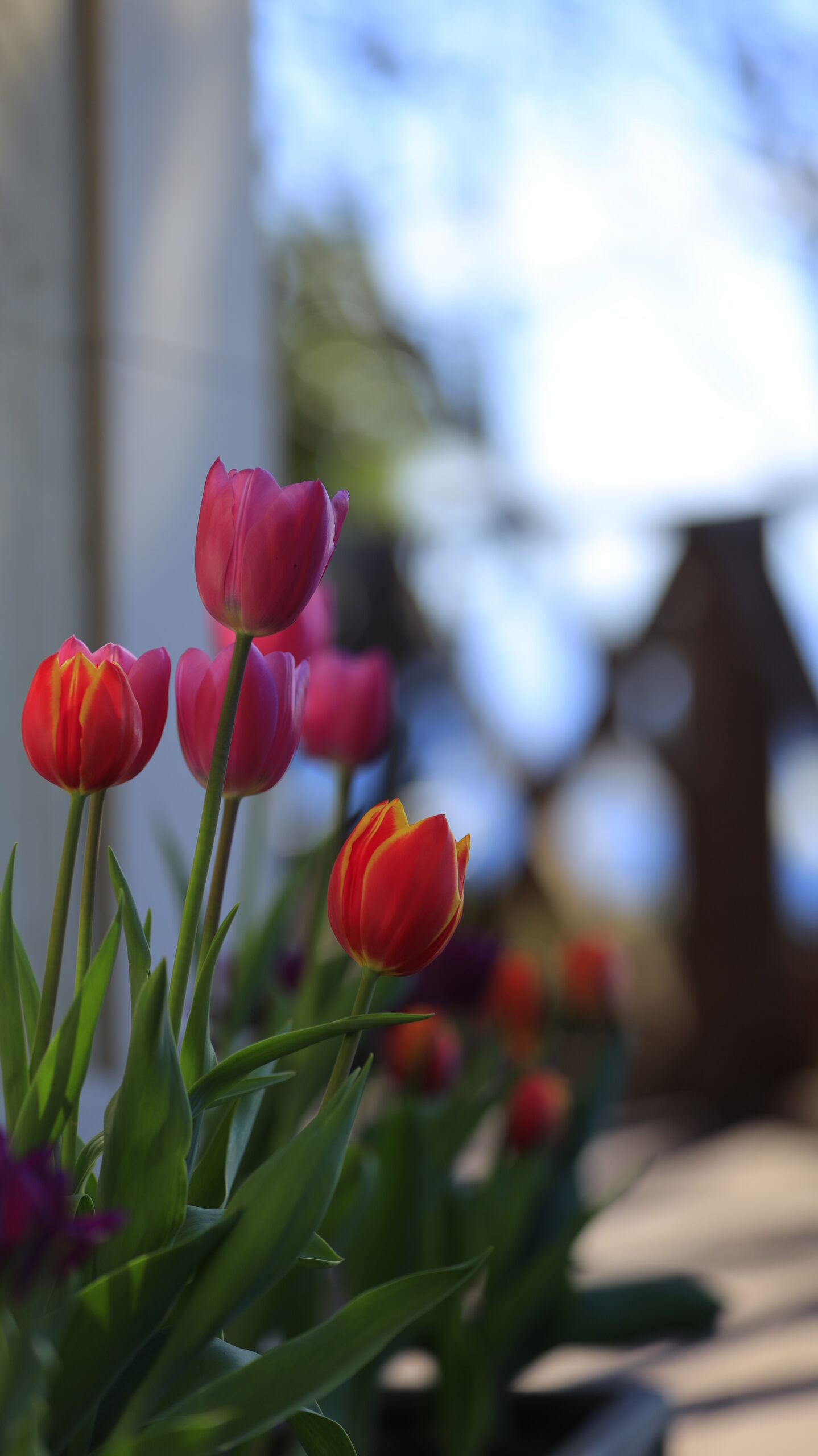 この写真は、ニューヨークランプミュージアム&フラワーガーデンで、建物の横に佇むアイスチューリップを横側から撮影したものです。