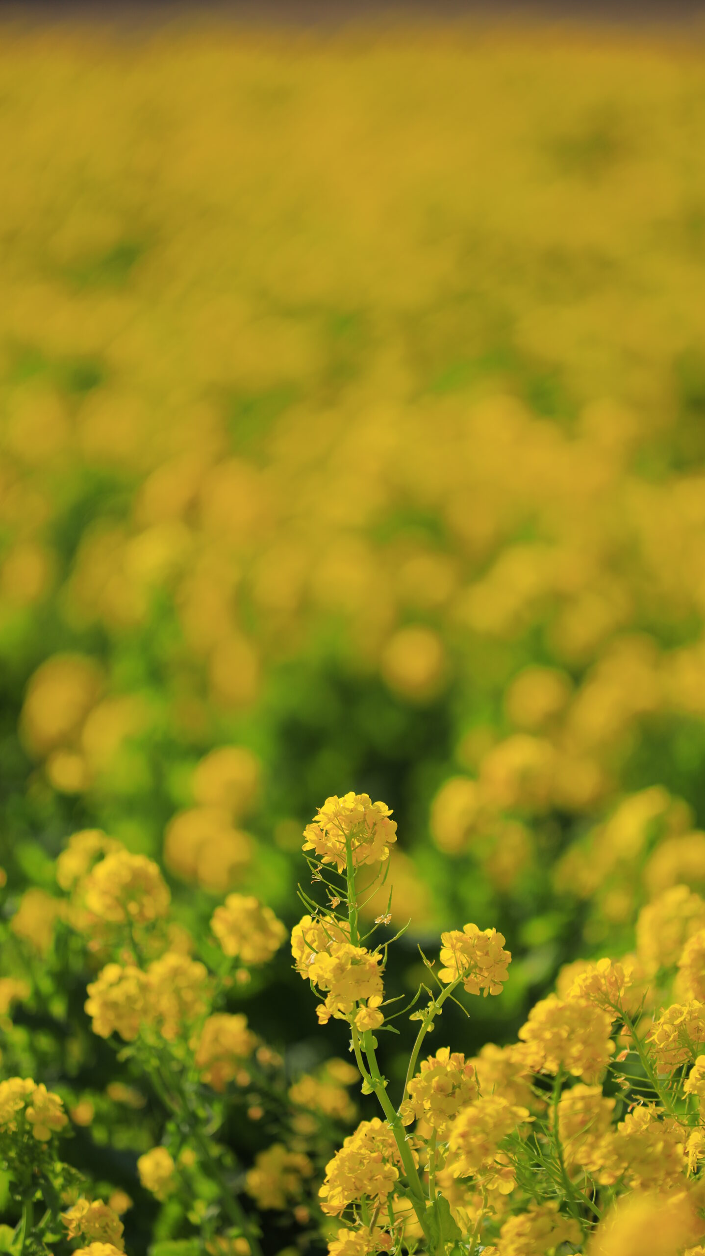 この写真は、鴨川菜の花ロードで、手前の菜の花にピントを合わせ、奥行きのぼかしを意識して撮影したものです。