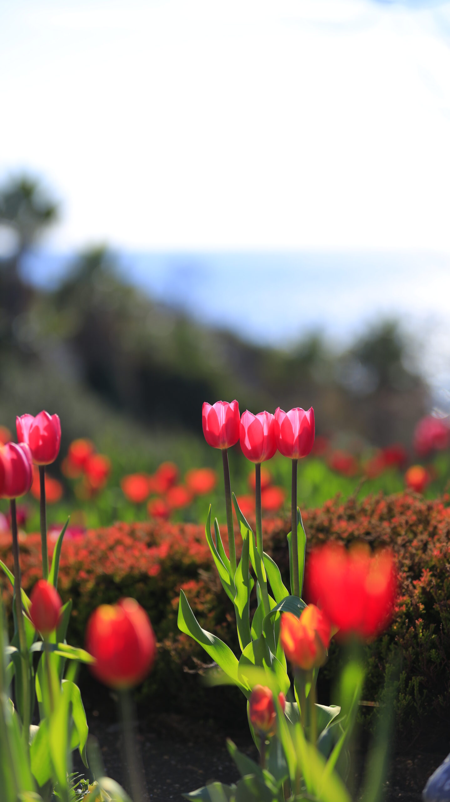 この写真は、ニューヨークランプミュージアム&フラワーガーデンで、3姉妹チューリップを少し引き目で撮影したものです。