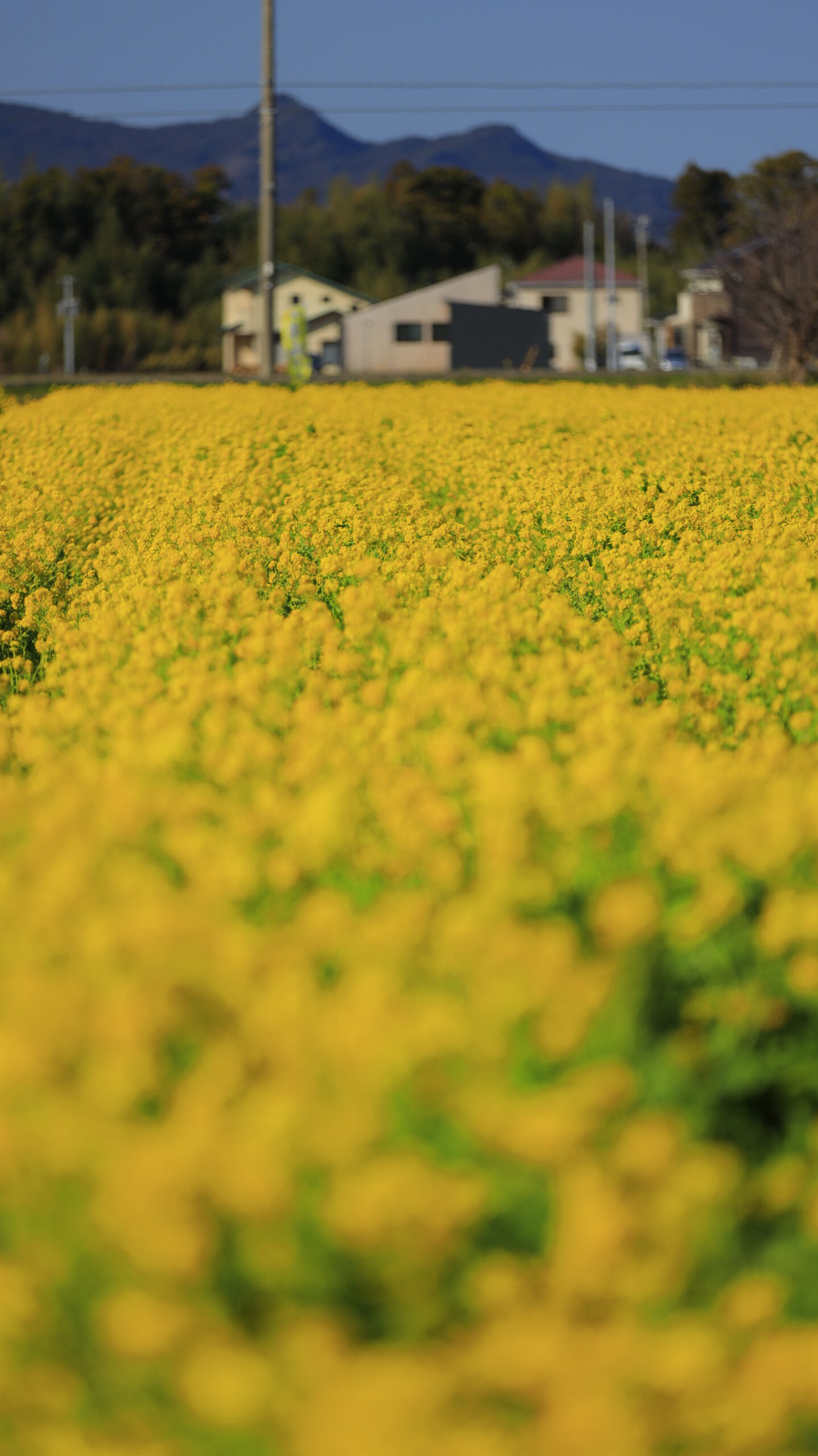 この写真は、鴨川菜の花ロードで、手前をぼかし奥にピントを合わせ、奥行きを意識して撮影したものです。