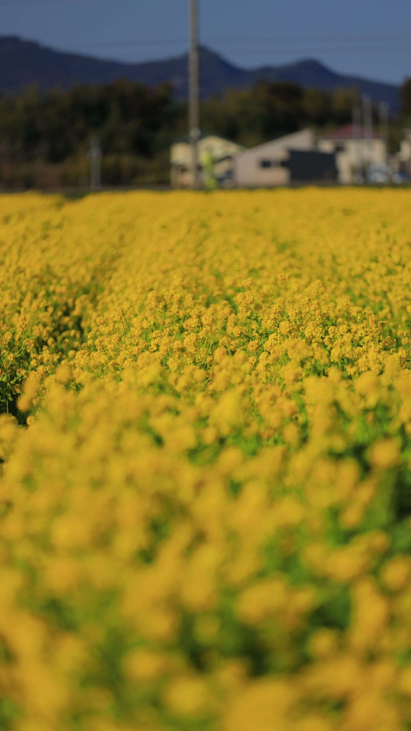 この写真は、鴨川菜の花ロードで、手前をぼかし中央付近にピントを合わせ、立体感を意識して撮影したものです。