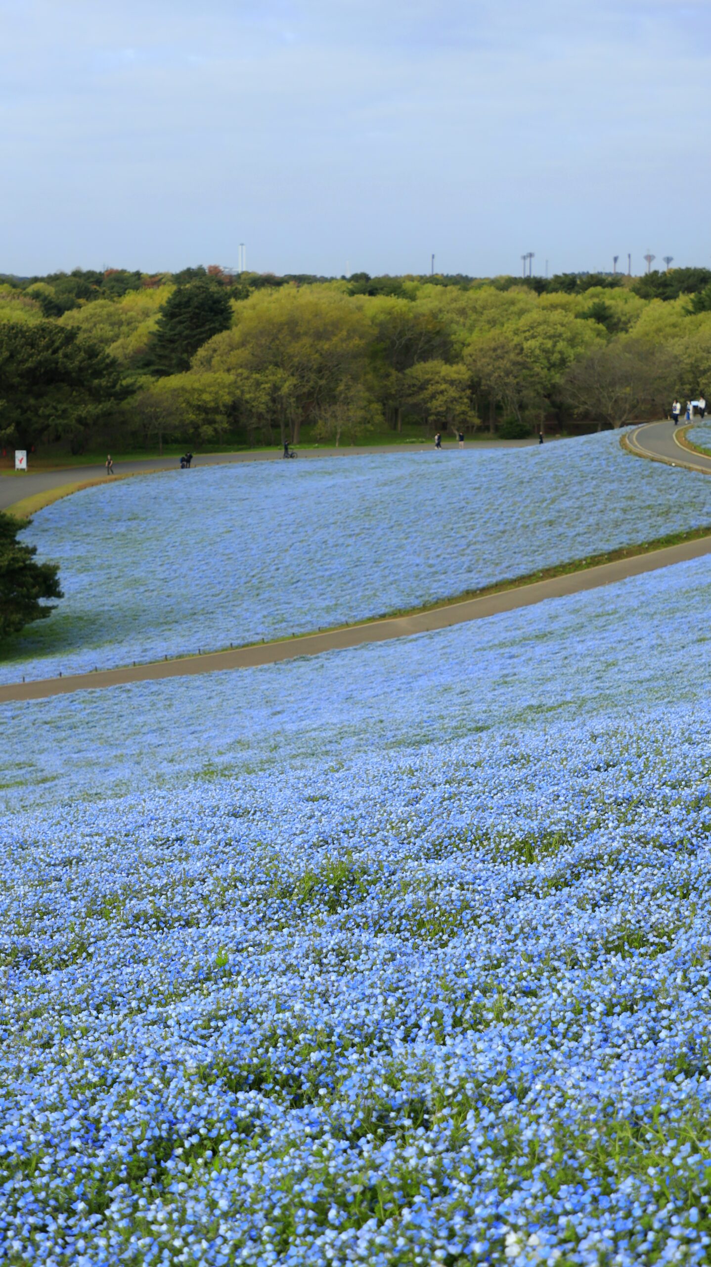 この写真は、国営ひたち海浜公園で、ネモフィラの丘の上から下方向に向かって撮影し、広がりとスケール感を意識したものです。