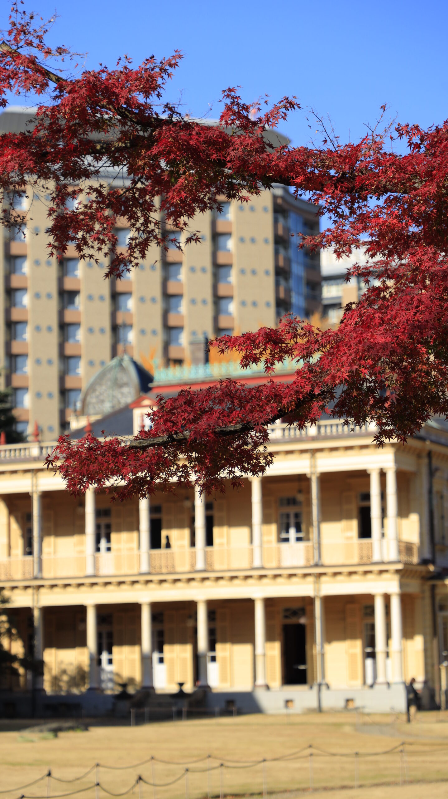 旧岩崎邸庭園|赤いモミジと洋館がつくる印象的な風景