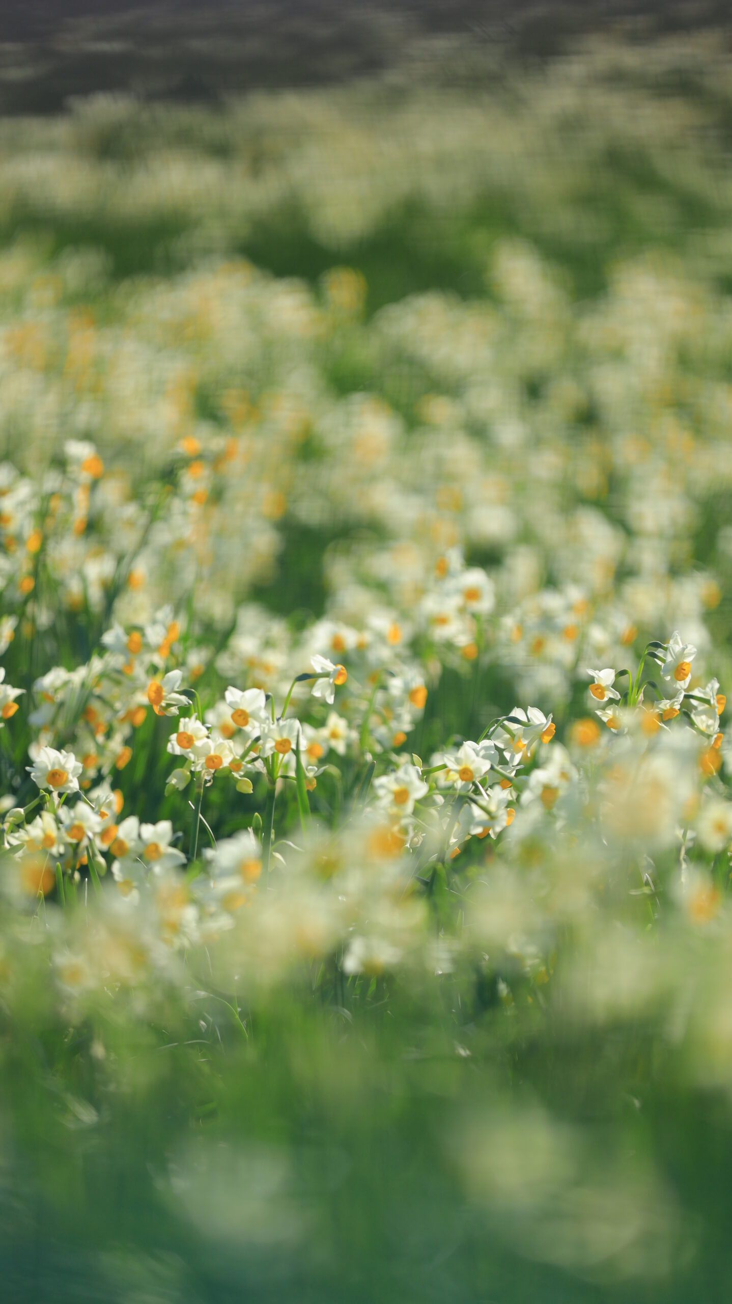爪木崎(下田)で、無数の水仙が咲く水仙畑の真ん中あたりにピントをあわせて撮影した画像