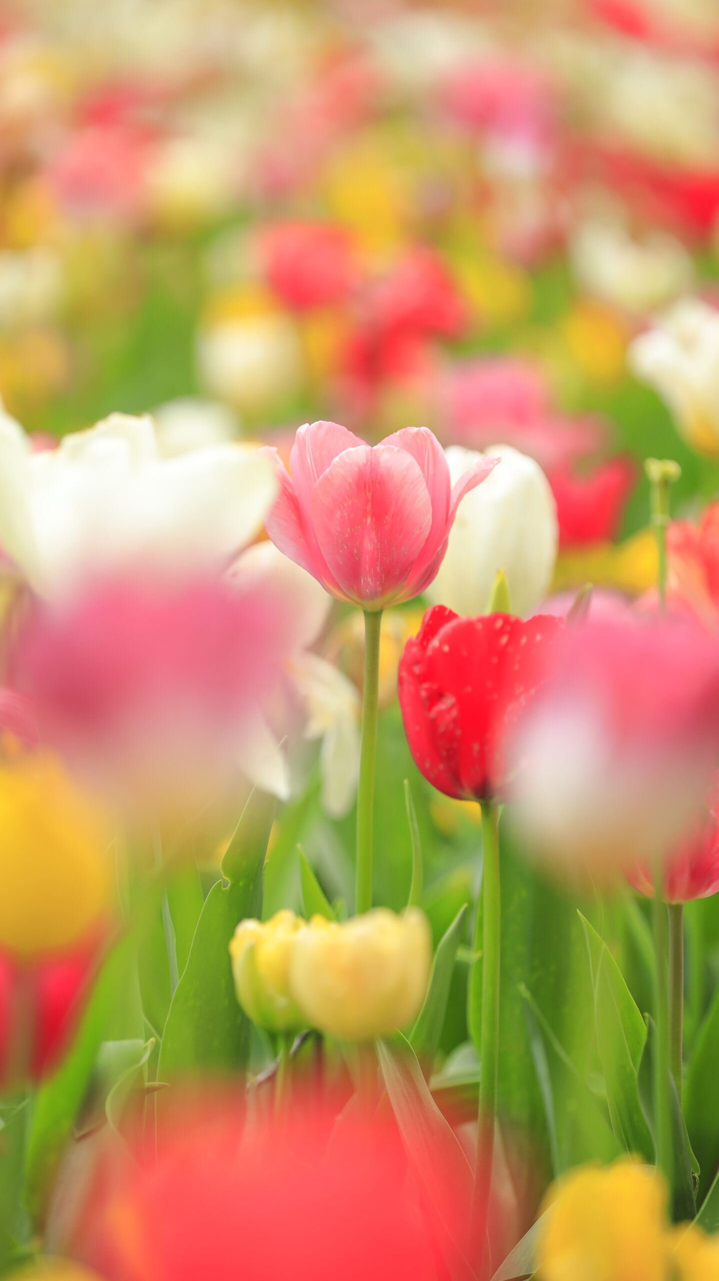 この写真は、国営ひたち海浜公園で、ふんわりとした雰囲気を意識し、中央のチューリップにピントを合わせて柔らかく表現したものです。