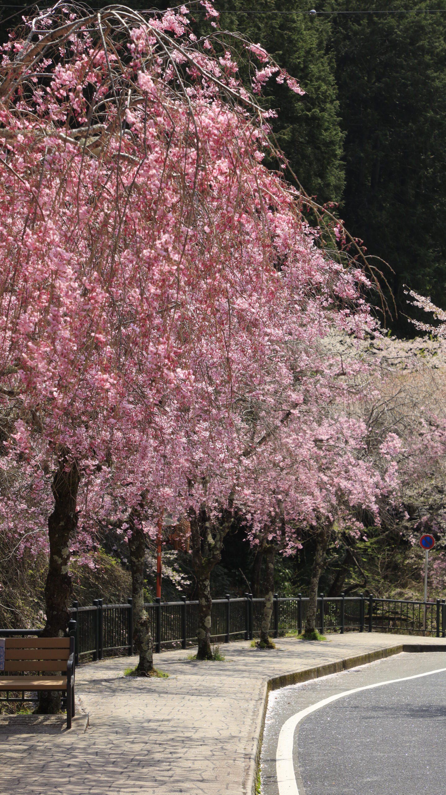 この写真は、身延山久遠寺で、徒歩での下山中に出会った綺麗なピンクの枝垂れ桜を撮影したもので、春らしい柔らかな色合いが印象的です。