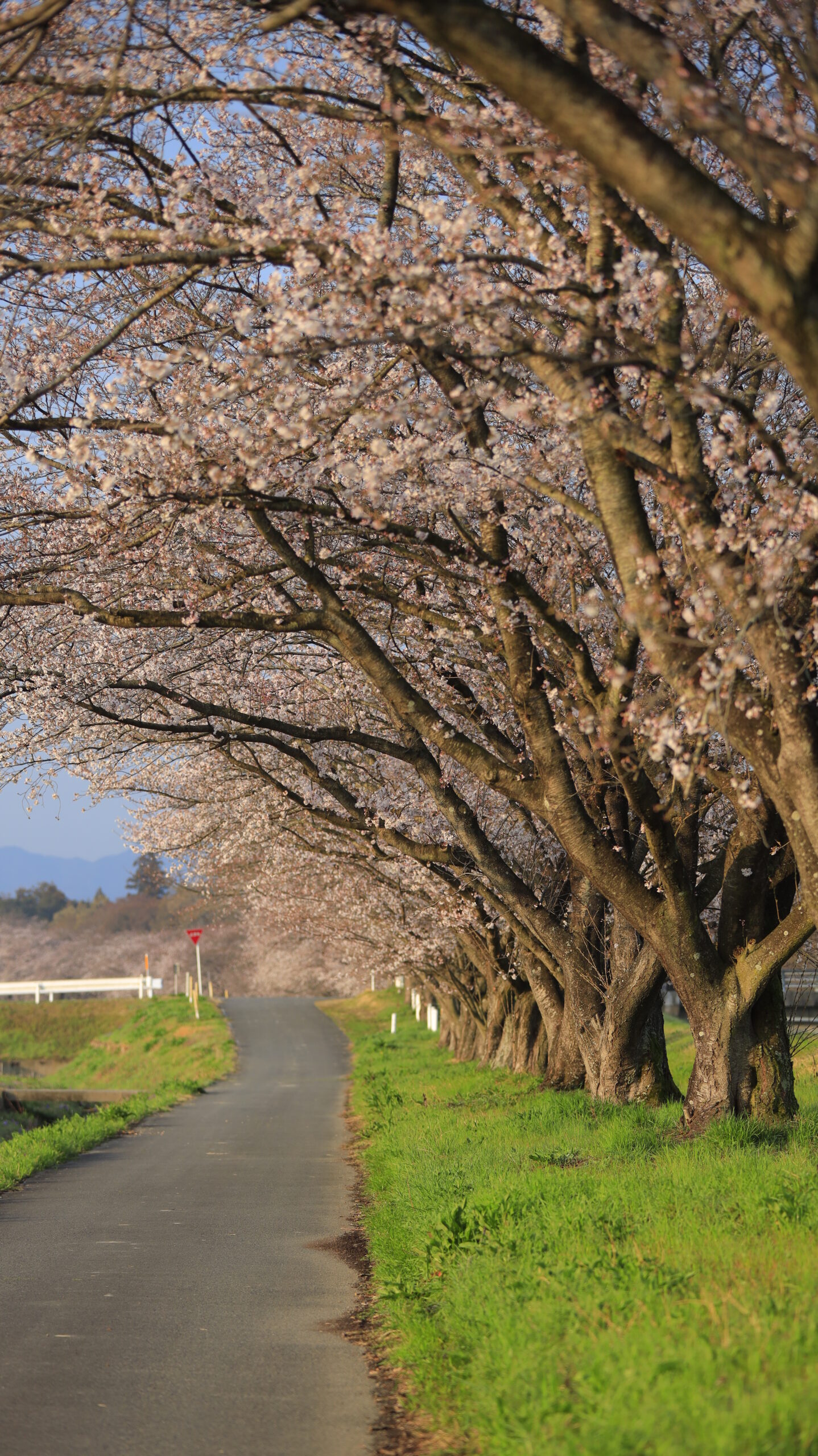 都幾川桜堤で開花の進んだ場所を選び奥行きを意識して撮影した桜並木