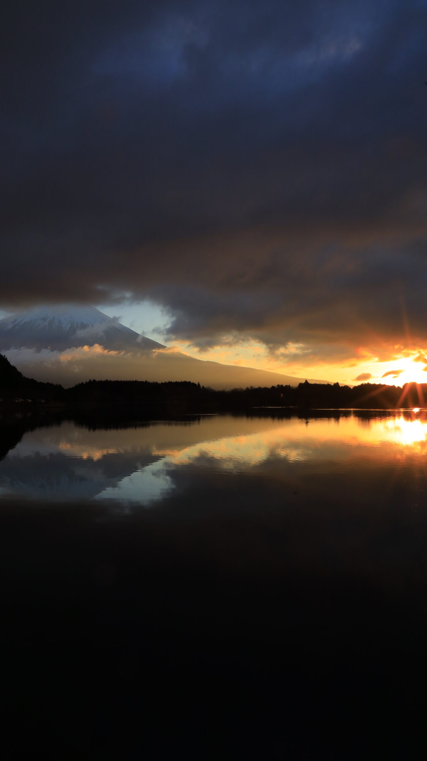 この写真は、田貫湖で、1月1日の初日の出の時間に、富士山の裾と太陽の光の様子をあわせて撮影したものです。光の当たり方を残しています。