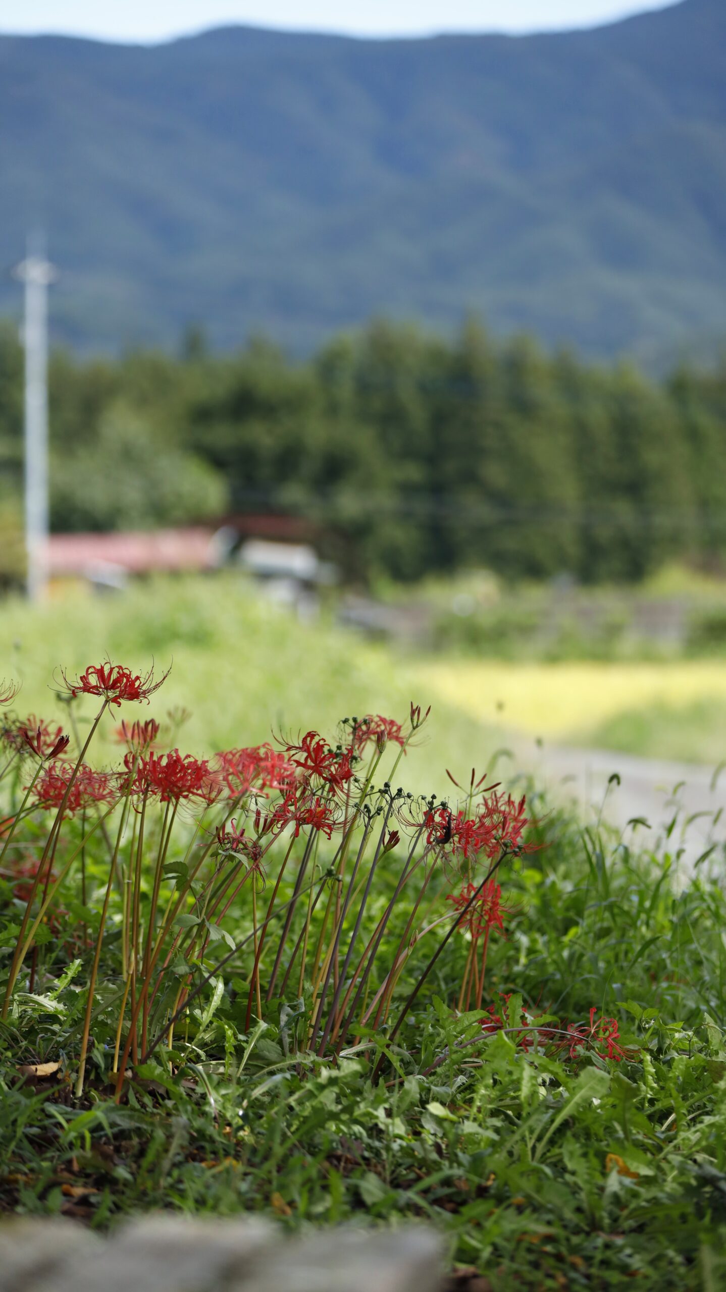 この写真は、たくみの里の「8番野仏」の周辺で咲いていた彼岸花を撮影したものです。奥の背景が明るく抜けるように構図を意識し、花の鮮やかな赤色がより際立つよう工夫しました。群馬県北部、みなかみ町の「たくみの里」は、のどかな田園風景が広がる里山観光の定番スポットです。工芸体験ができる工房が点在し、木工・陶芸・和紙作りなど、旅の思い出になる体験が可能。秋には彼岸花とコスモスが道を彩り、八番野仏周辺では真っ赤な曼殊沙華が咲き誇り、多くの写真愛好家が訪れる絶景の名所です。