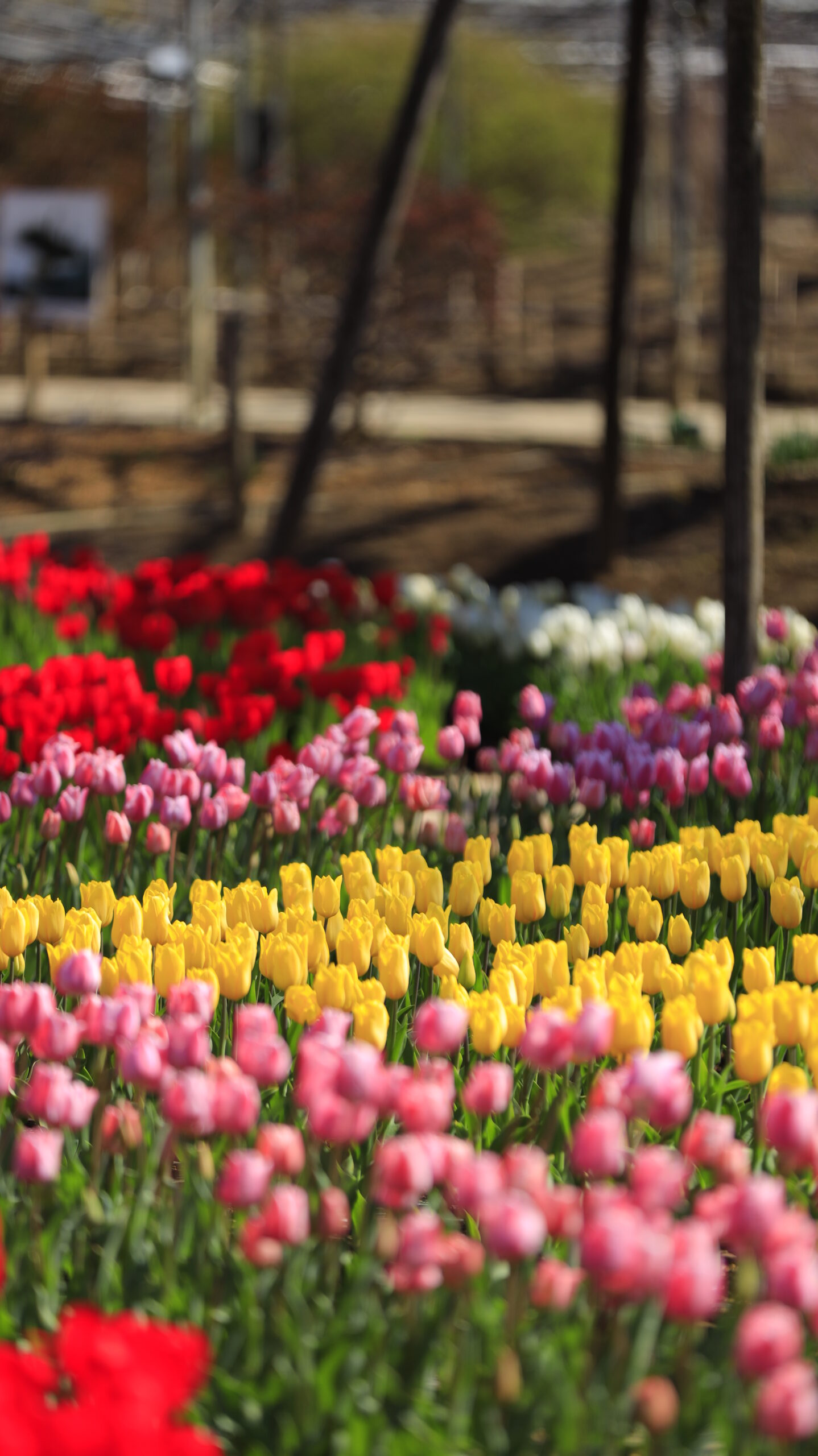 あしかがフラワーパークの光を浴びて広がるカラフルなチューリップ畑