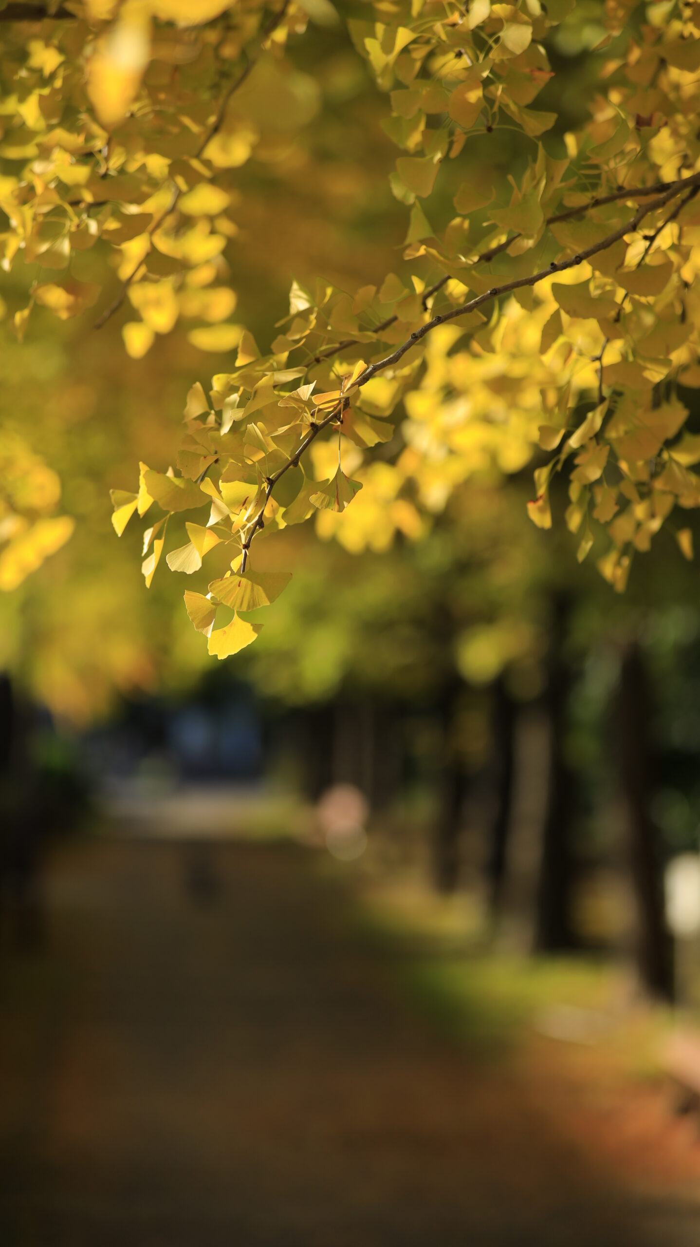 この写真は、宇都宮駅東公園で、手前の黄色いイチョウの葉にピントを合わせ、背景をぼかして奥行きを出したもので、立体感と奥ゆかしさを感じる一枚です。