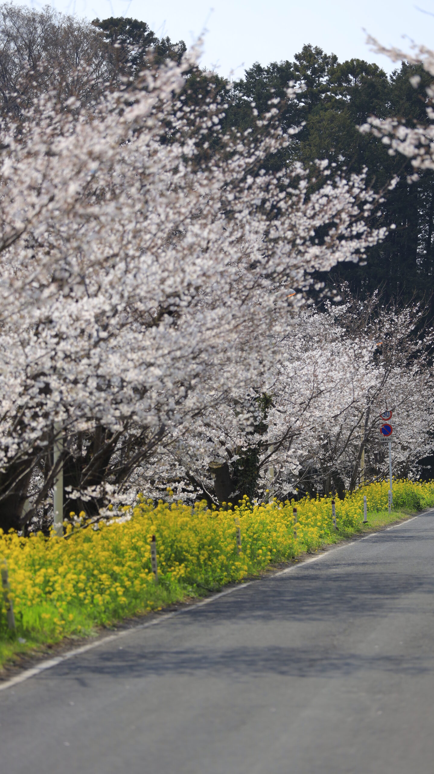 この写真は、城ヶ谷堤で、桜並木の小路で桜と菜の花の組み合わせを撮影したものです。