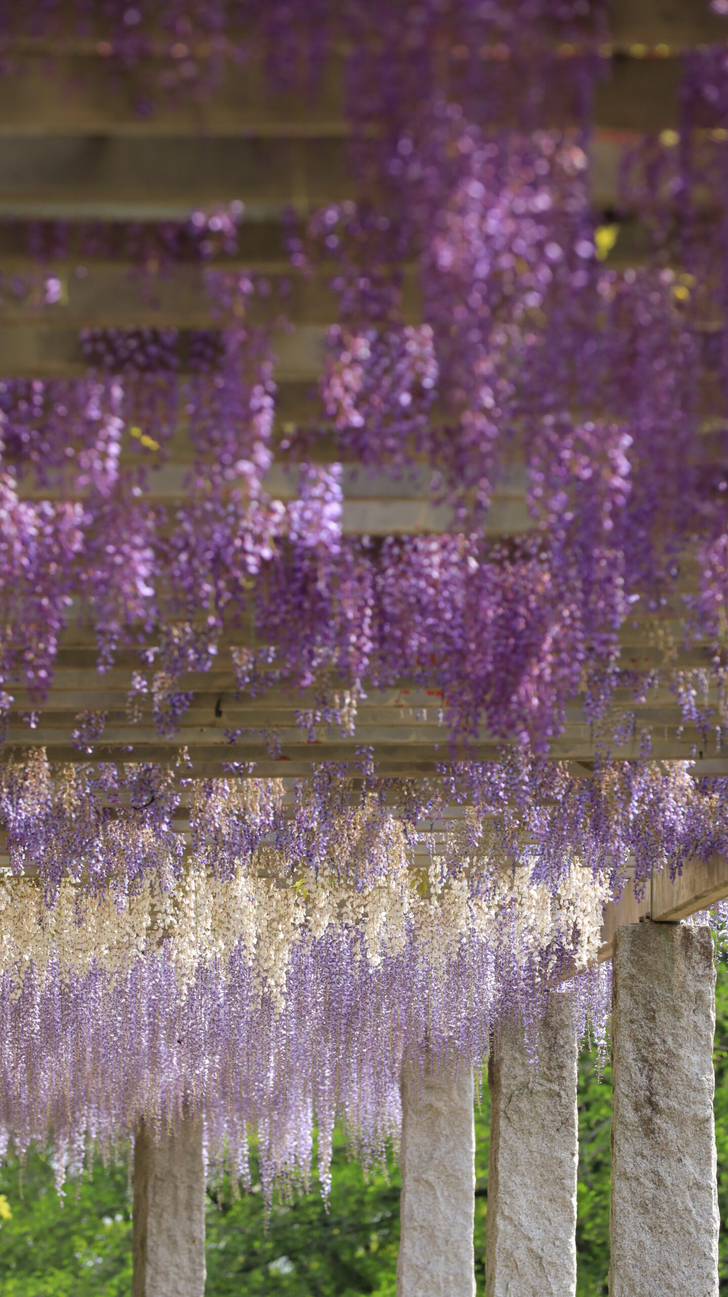 ふじの咲く丘(藤岡)の藤のグラデーションと奥行きある通路