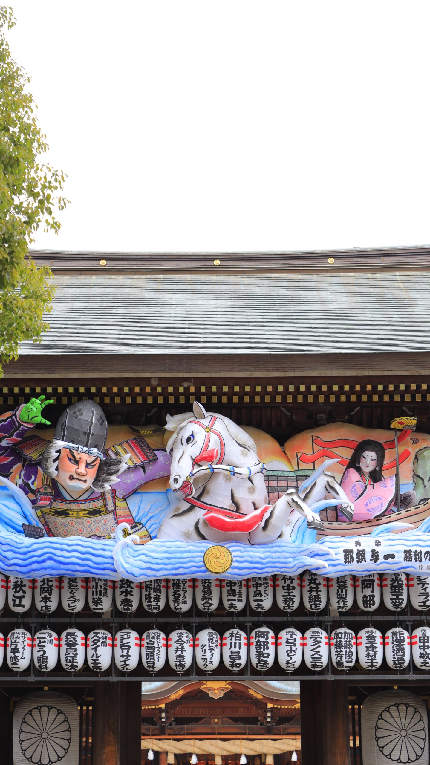 この写真は、寒川神社で、入口に設置された午年のねぶたの様子を記録的に撮影したものです。
