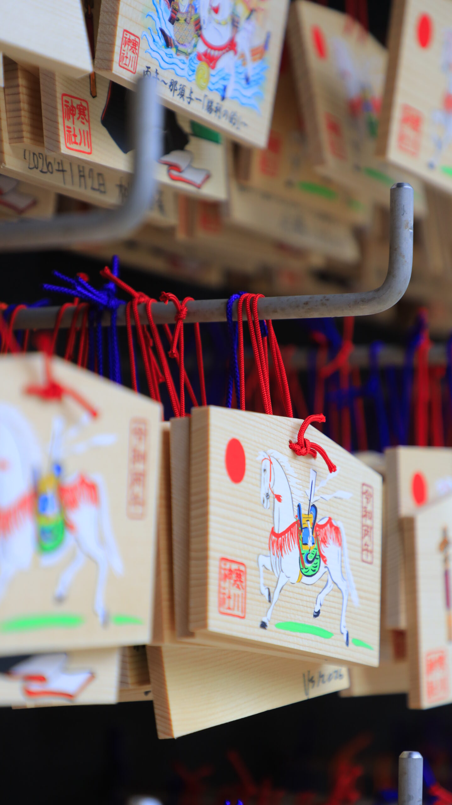 この写真は、寒川神社で、午年を象徴する白馬の絵馬をクローズアップして撮影しました。