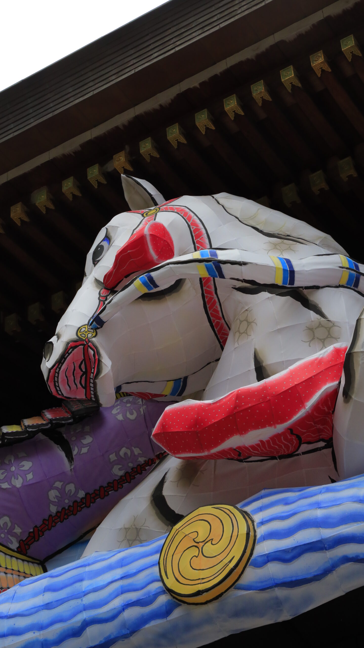 寒川神社で午年の白馬ねぶたを下から捉えた立体的な姿