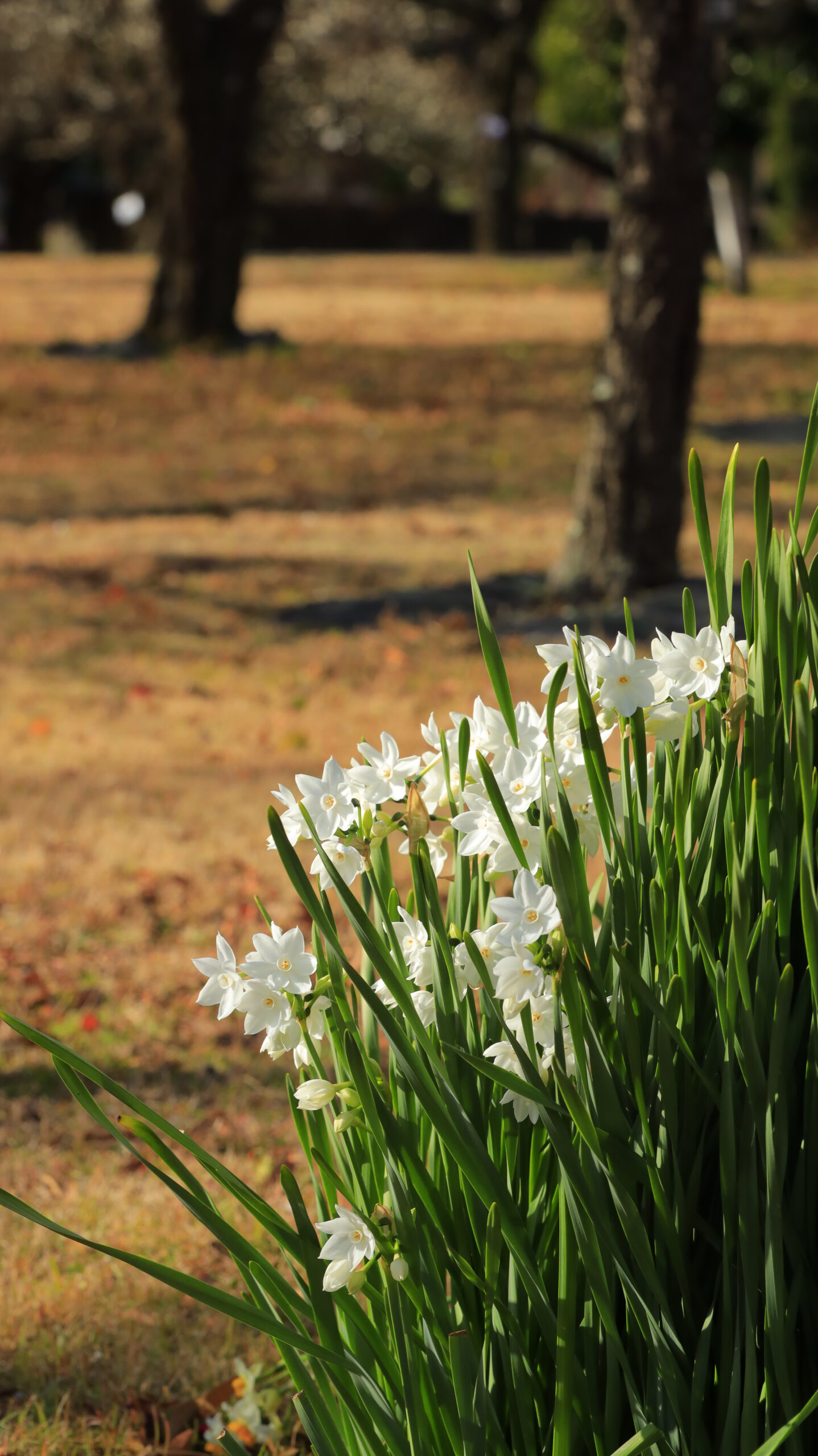 この写真は、小田原フラワーガーデンで、ペーパーホワイト水仙を斜め上から撮影し、花の形が分かりやすいように構図を工夫しました。
