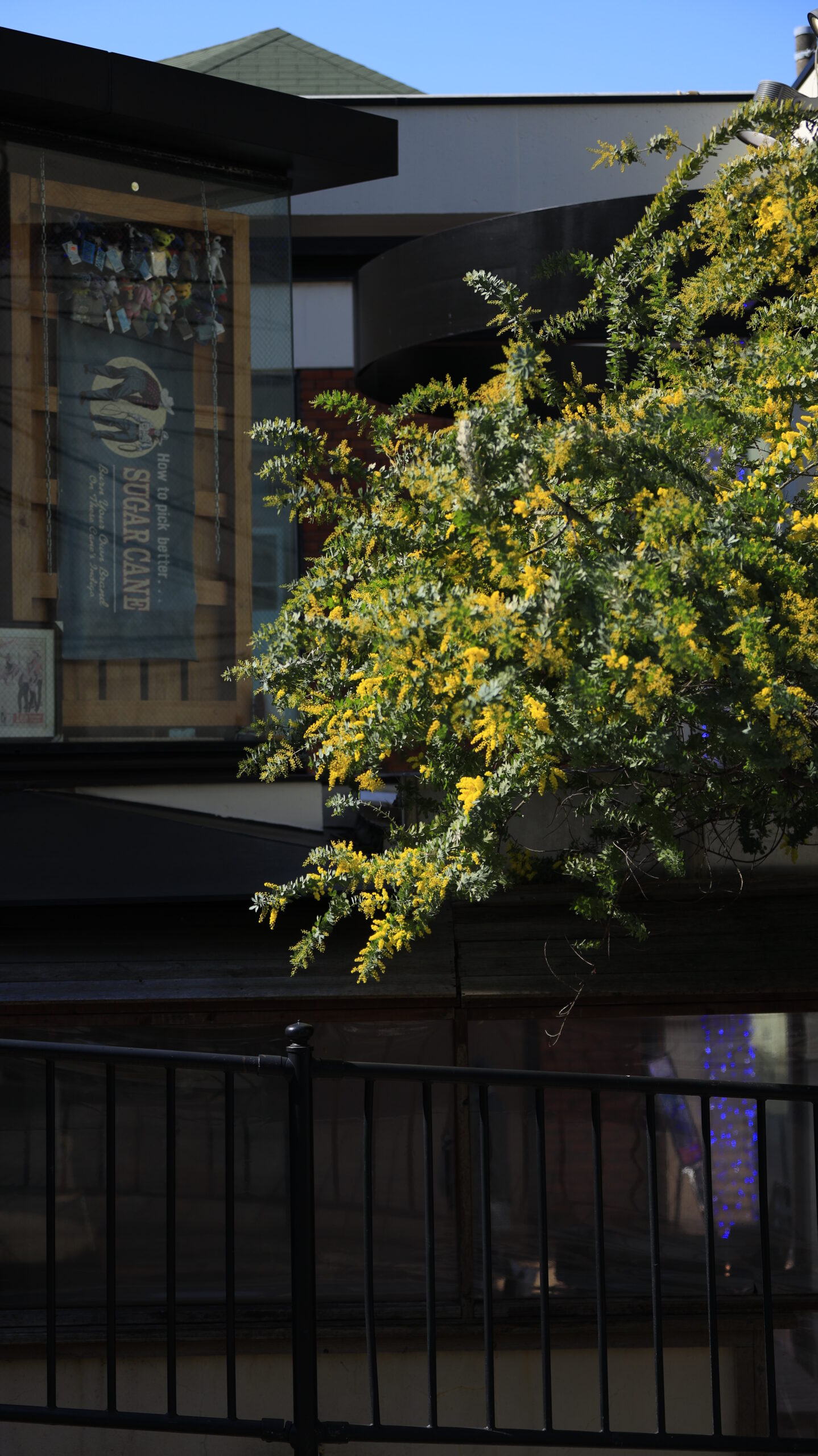 元町のミモザ|ミモザと店先の春景色
