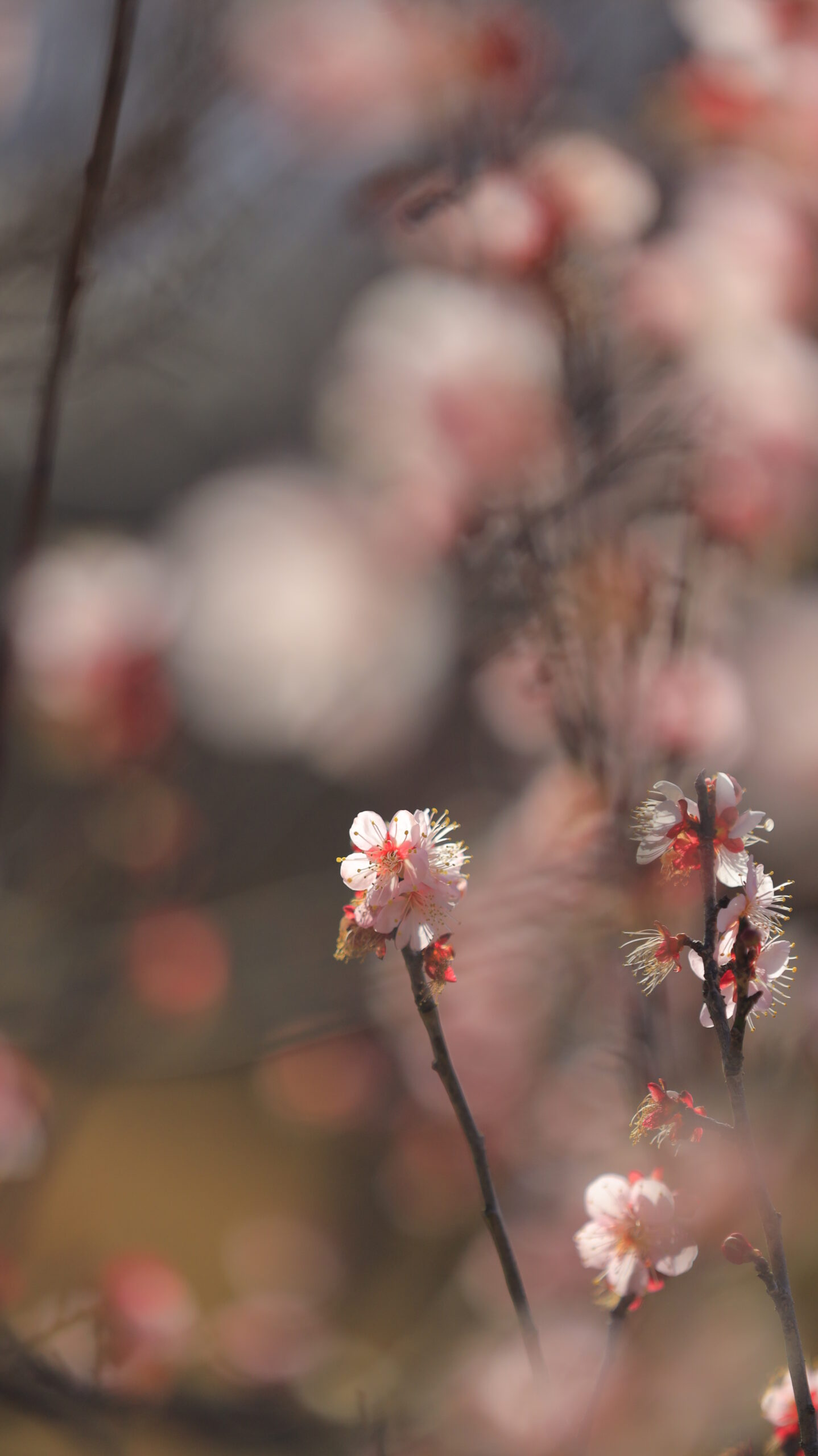 この写真は、小田原フラワーガーデンで、ポツンと咲く梅の花を柔らかい描写で表現しました。