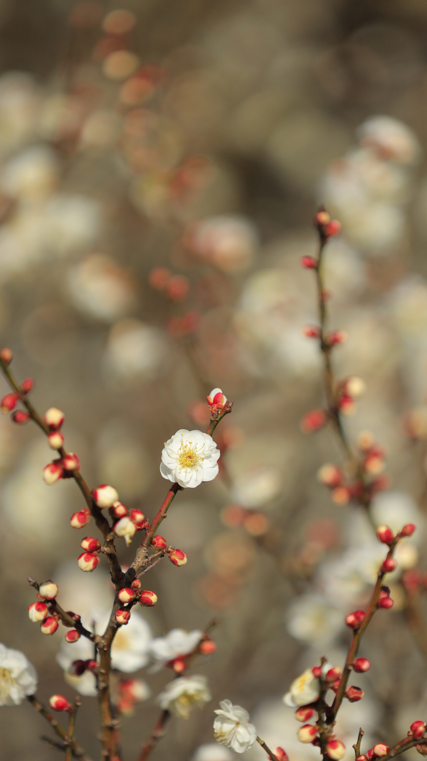 この写真は、小田原フラワーガーデンで、白い梅の花を背景ぼかし気味で撮影し、主役を引き立てました。