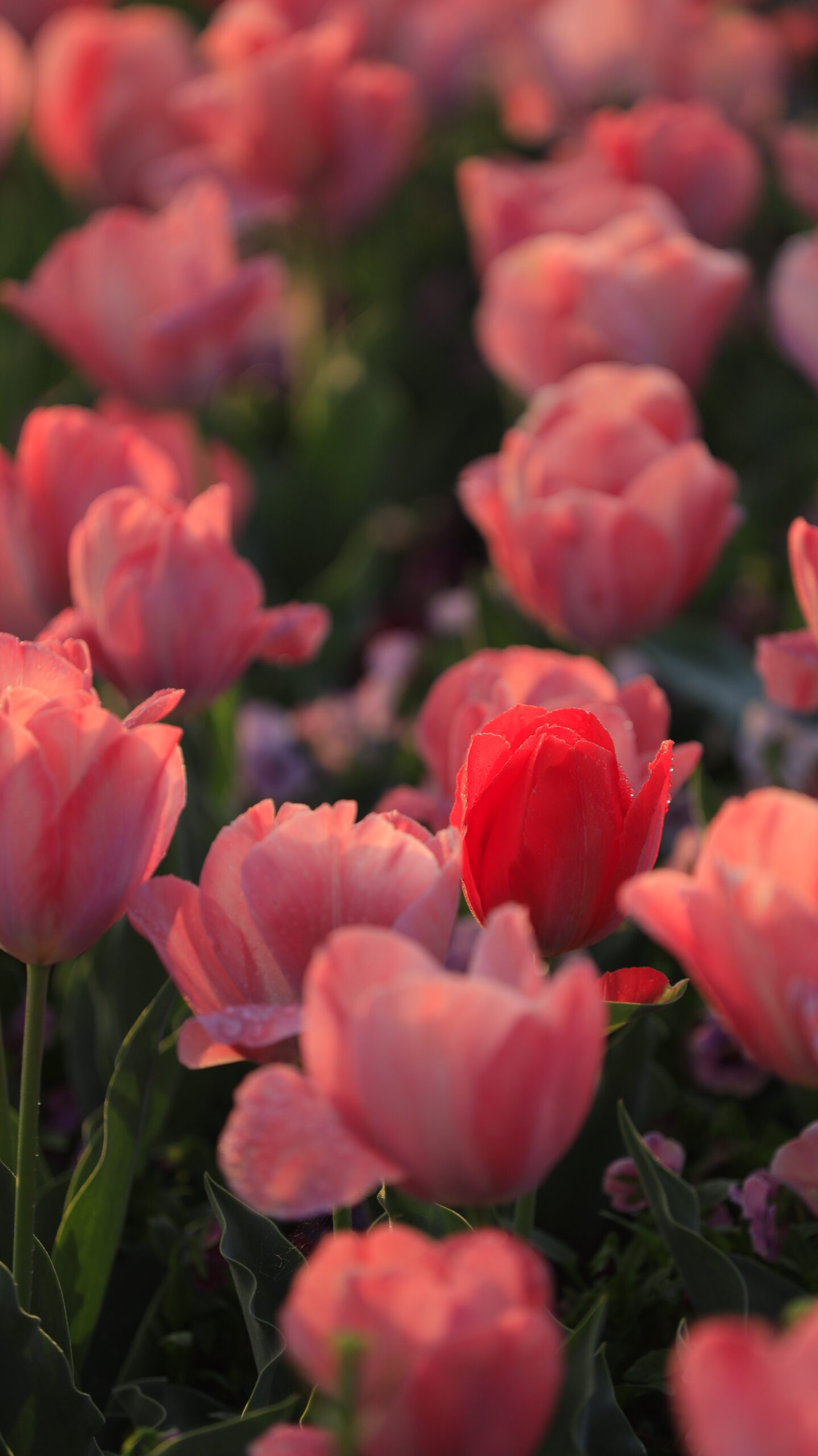 この写真は、あけぼの山農業公園で、薄ピンクの中で際立つ濃いピンクのチューリップを主役にして撮影したものです。