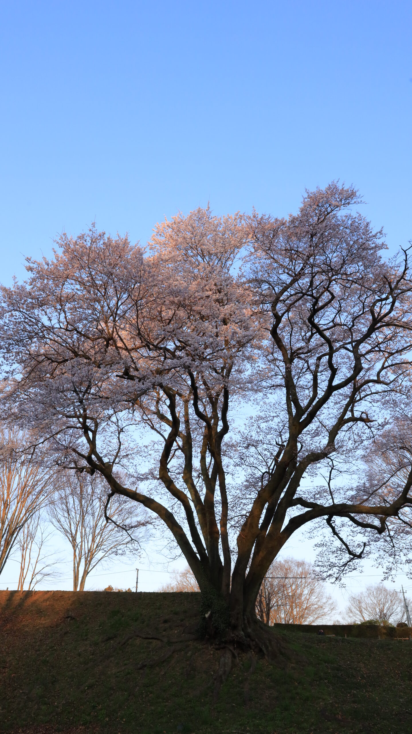 鉢形城跡付近で 低い位置から見上げ空の抜けと桜の広がりを表現した一枚