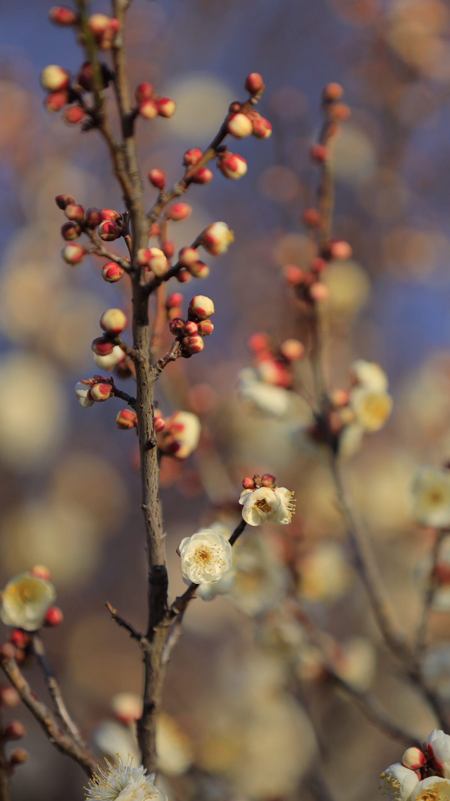 大宮第二公園で撮影した、白い梅の花が美しい枝ぶりを捉えた一枚。