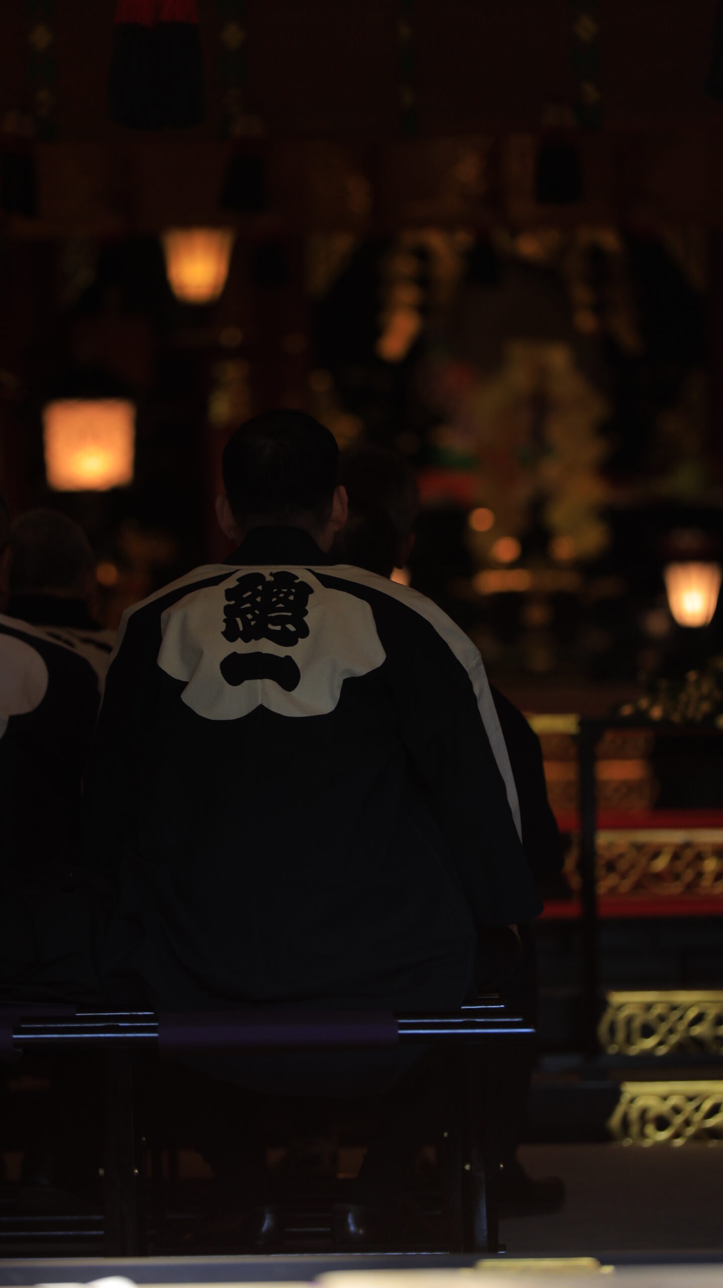 来宮神社で、神社内にいる人の様子をあえて暗めに仕上げて撮影した写真です。