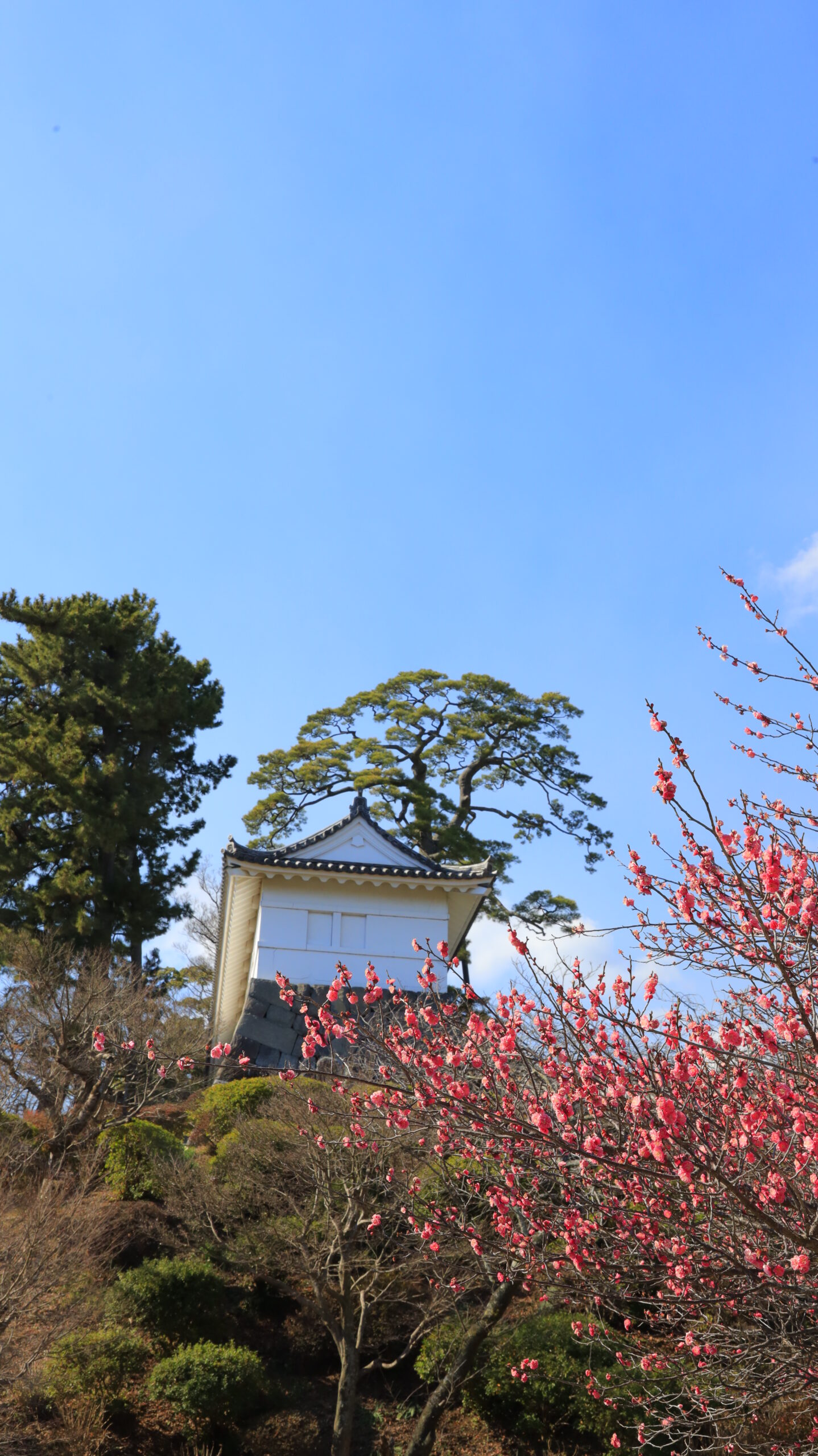 この写真は、小田原城で、梅の花と小田原城の一部を組み合わせて撮影したものです。