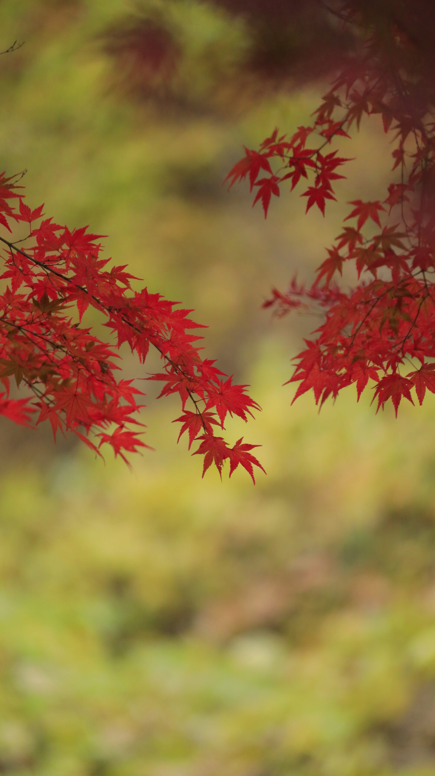 この写真は、桜山公園(藤岡市)で曇り空を背景に、上から下へと紅葉を捉える構図で撮影したもので、柔らかな光がモミジの色味を美しく引き出しています。