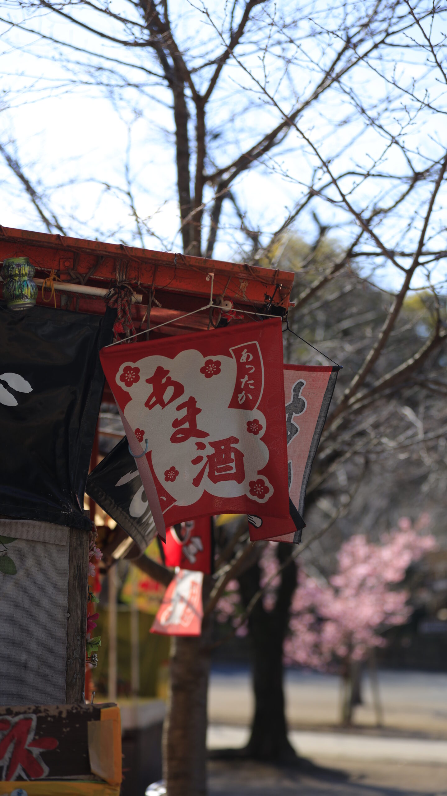 この写真は、喜多院で、院内の店舗に掲げられた甘酒の旗を撮影し、参拝の合間に立ち寄りたくなる境内の空気感や旅情が伝わるようにまとめた写真です。