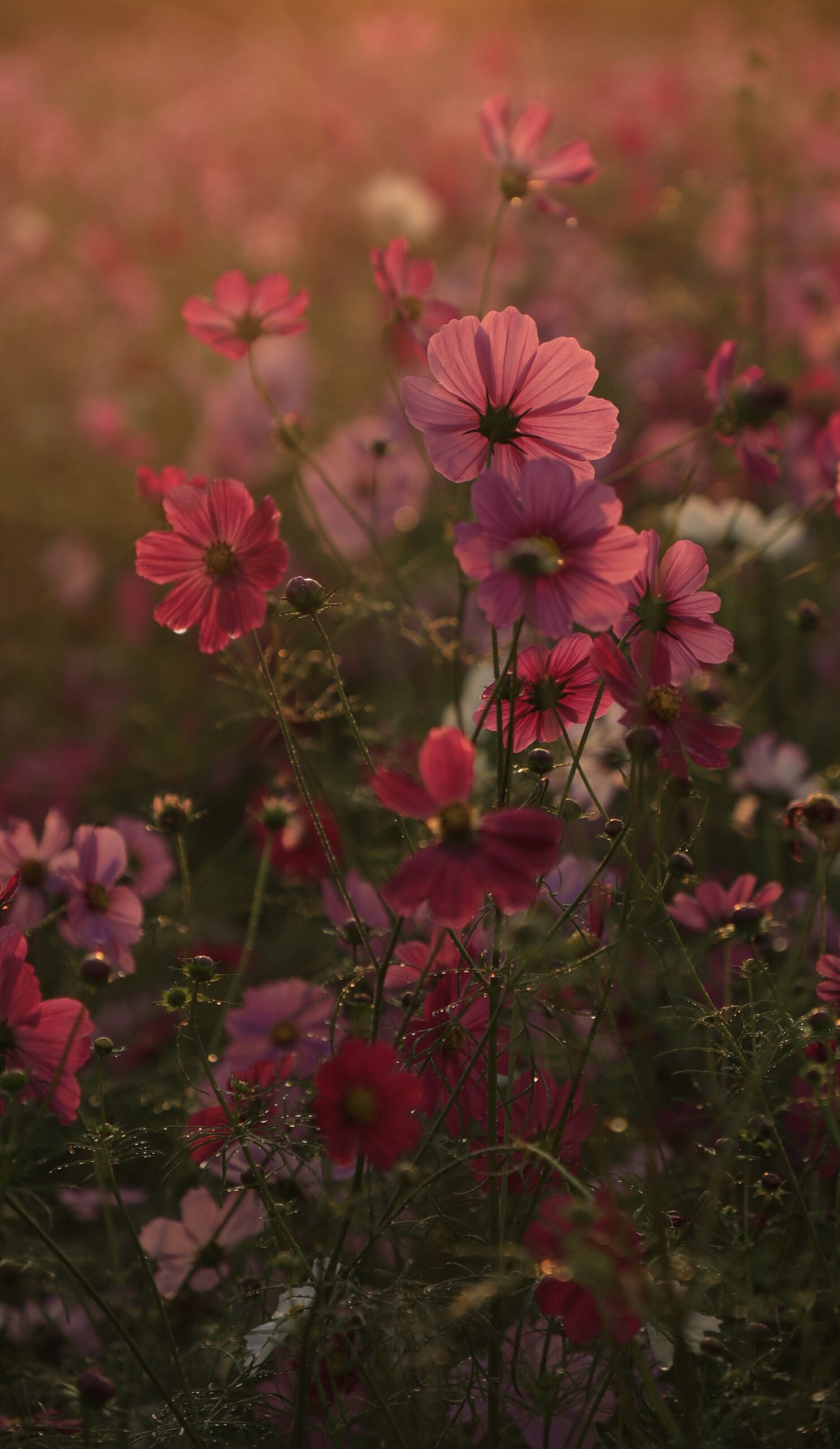 神川ゆ~ゆ~ランド|夜明けの光に浮かぶ静かなコスモスの姿
