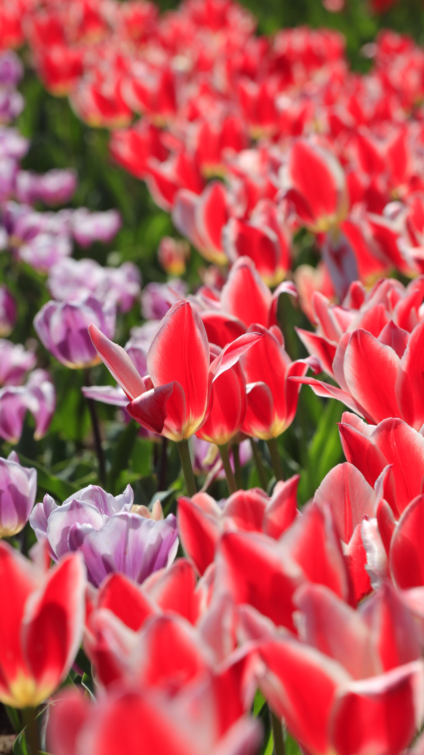 この写真は、東京ドイツ村で、赤いチューリップが光を受けて透き通るように輝く様子を撮影したものです。