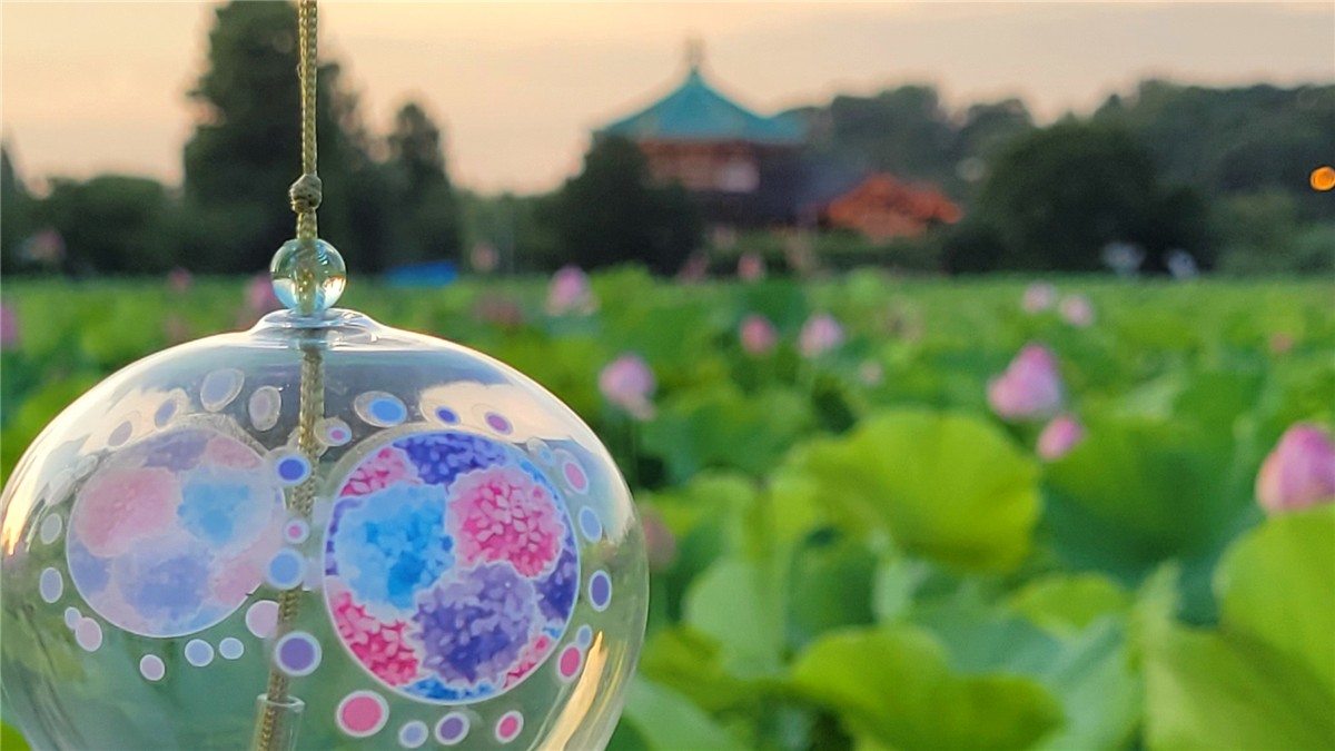 都心のオアシス、上野・不忍池では、蓮の花と風鈴の共演が見られることもあります。朝の静けさの中で、池に咲き誇る蓮を背景に、そっと揺れる風鈴が映り込む風景は、まさに“都会の涼”。自然と人工の絶妙なバランスが写真に落ち着いたリズムを与えてくれます。